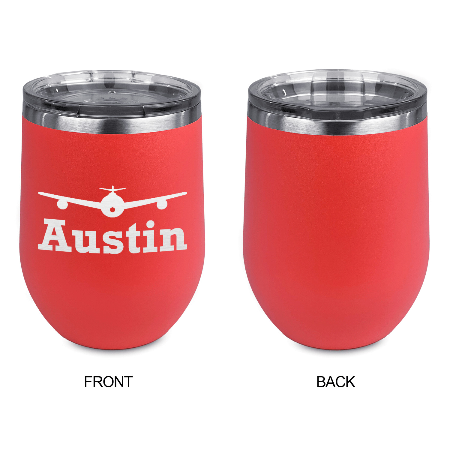 Planes Designs for Stemless Stainless Steel Wine Tumblers - Coral - Single-Sided