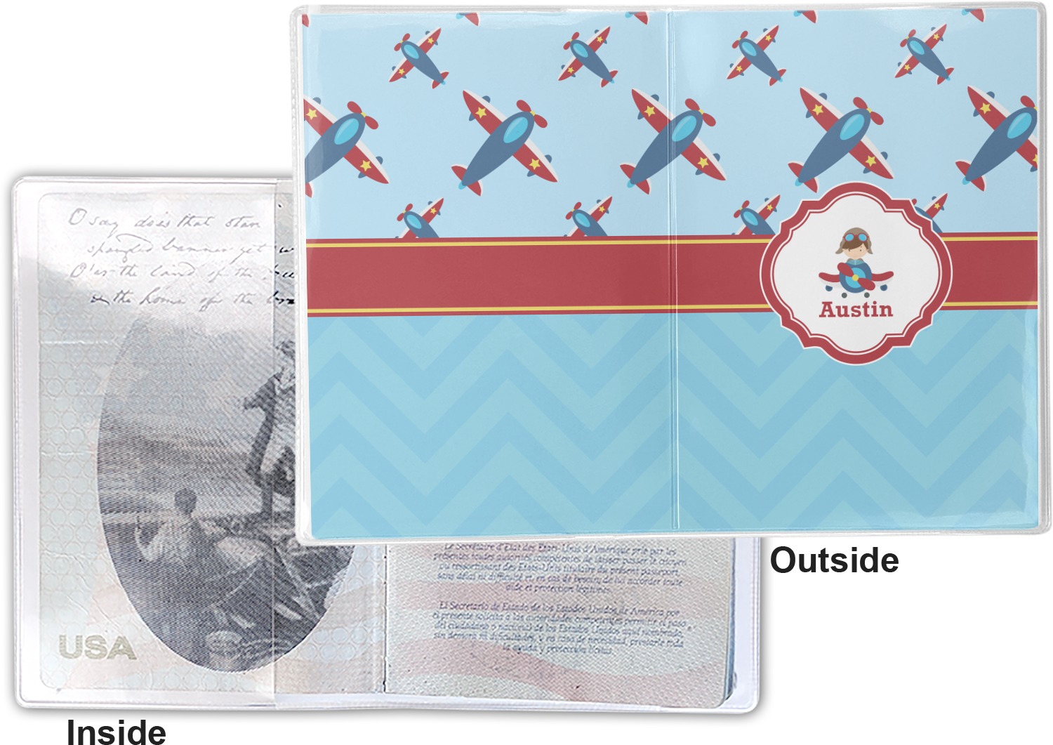 This cover is made of a sturdy clear vinyl with a personalized vinyl insert inside. There is a large and a small pocket on either side to hold the covers of your passport easily and firmly. The passport holder is approximately 7.5" x 5.25", the perfect size to snugly fit your passport. This slim cover is the perfect way to protect your passport without being one more bulky item you have to carry.