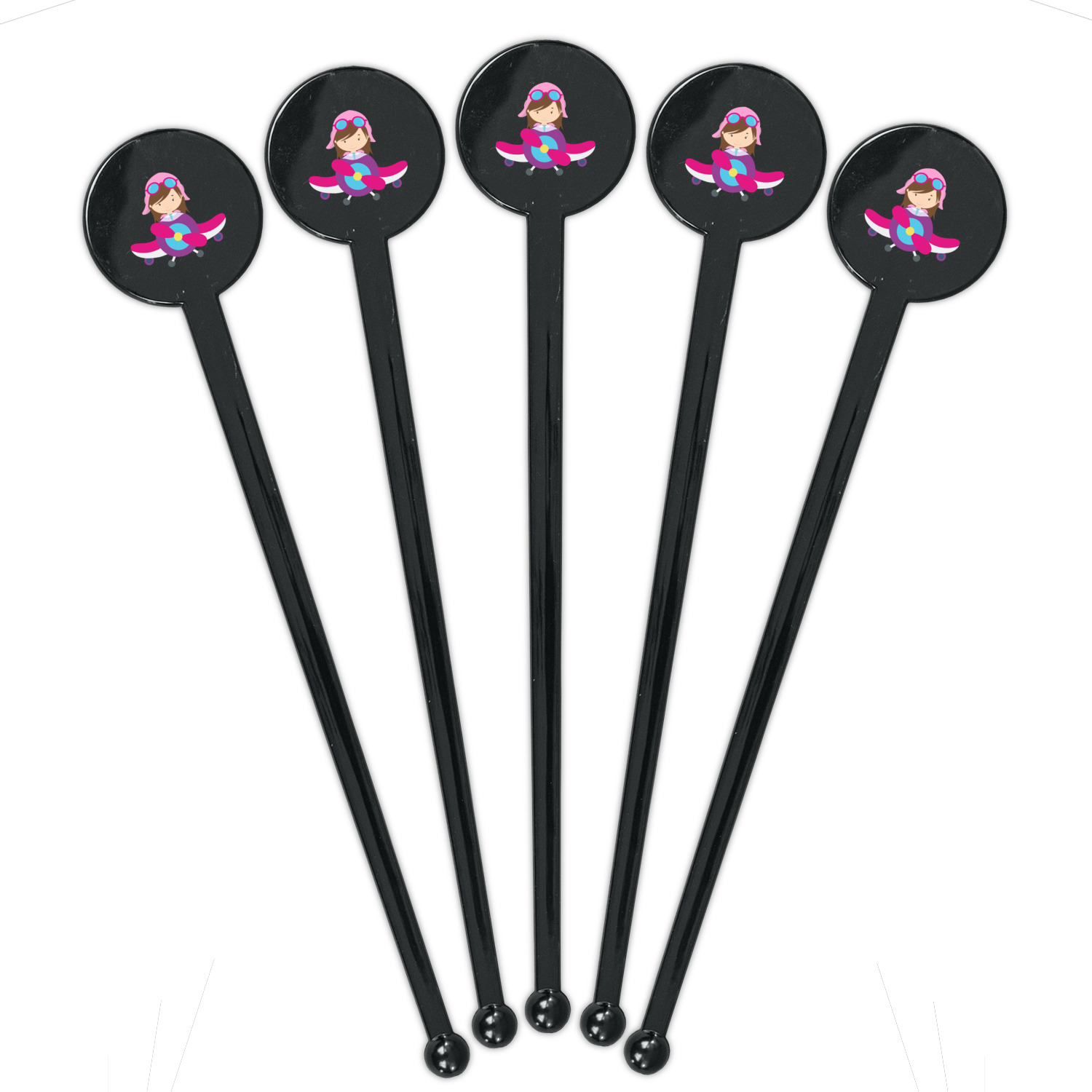 Aviation Designs for 7" Round Plastic Stir Sticks - Black - Single-Sided