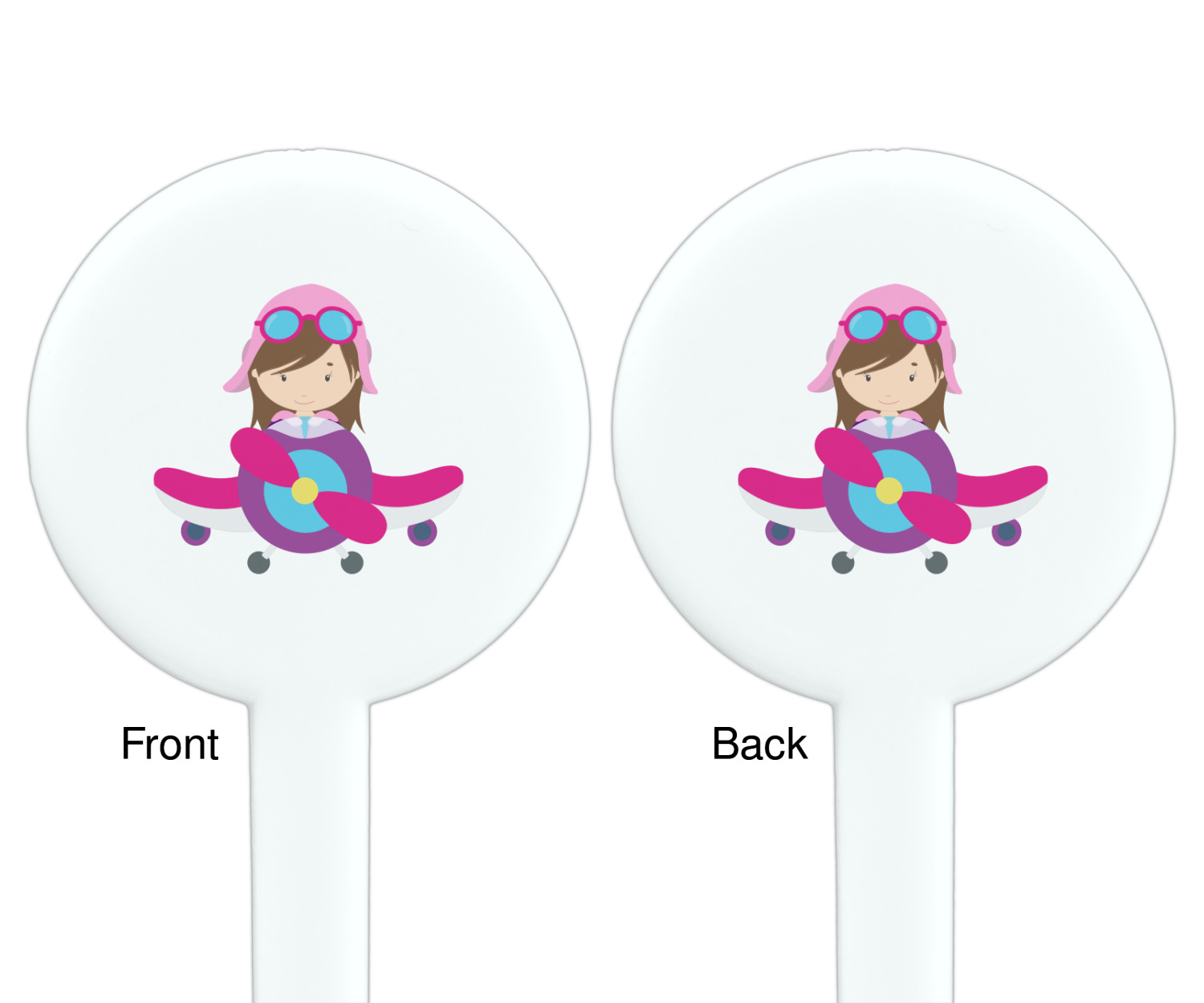 Aviation Designs for 7" Round Plastic Stir Sticks - White - Double-Sided