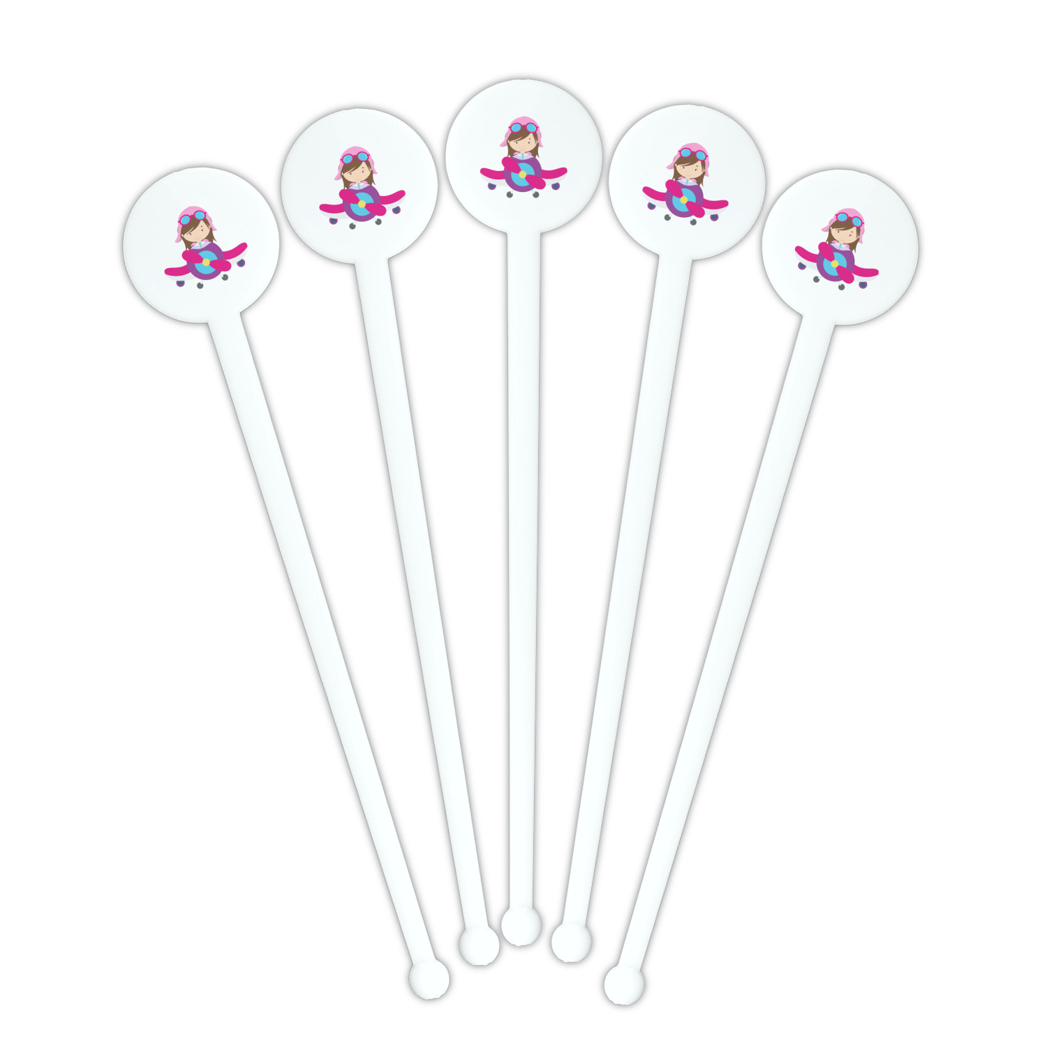 Aviation Designs for 7" Round Plastic Stir Sticks - White - Single-Sided