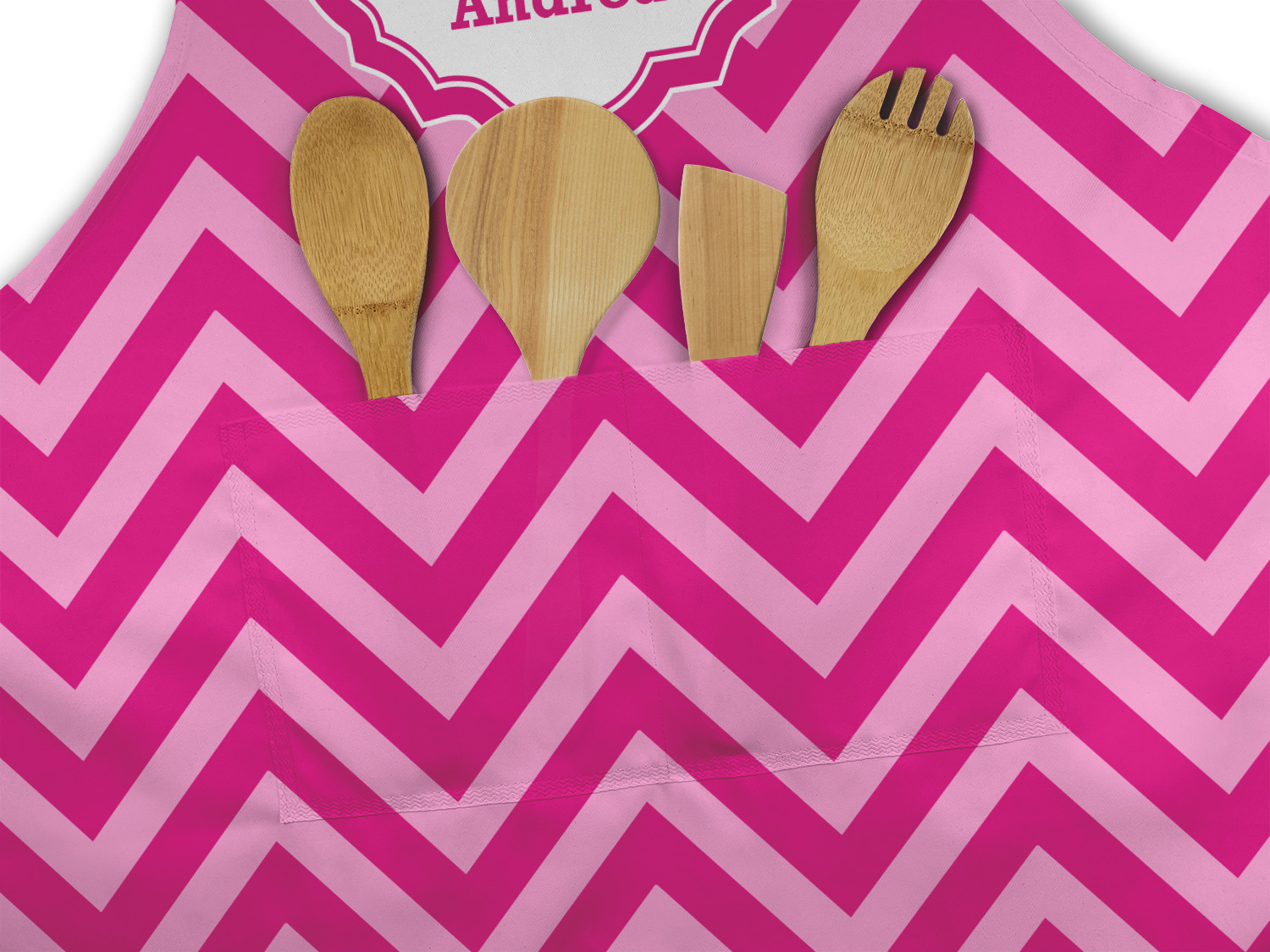 Our aprons are a lightweight yet durable polyester material. We offer two styles of aprons, one without pockets and one with two pockets adorning the center near the waistline. Each apron is one size* and comes with adjustable straps for both the neckline and waist. We print your custom design on the front of the apron to display your creativity!