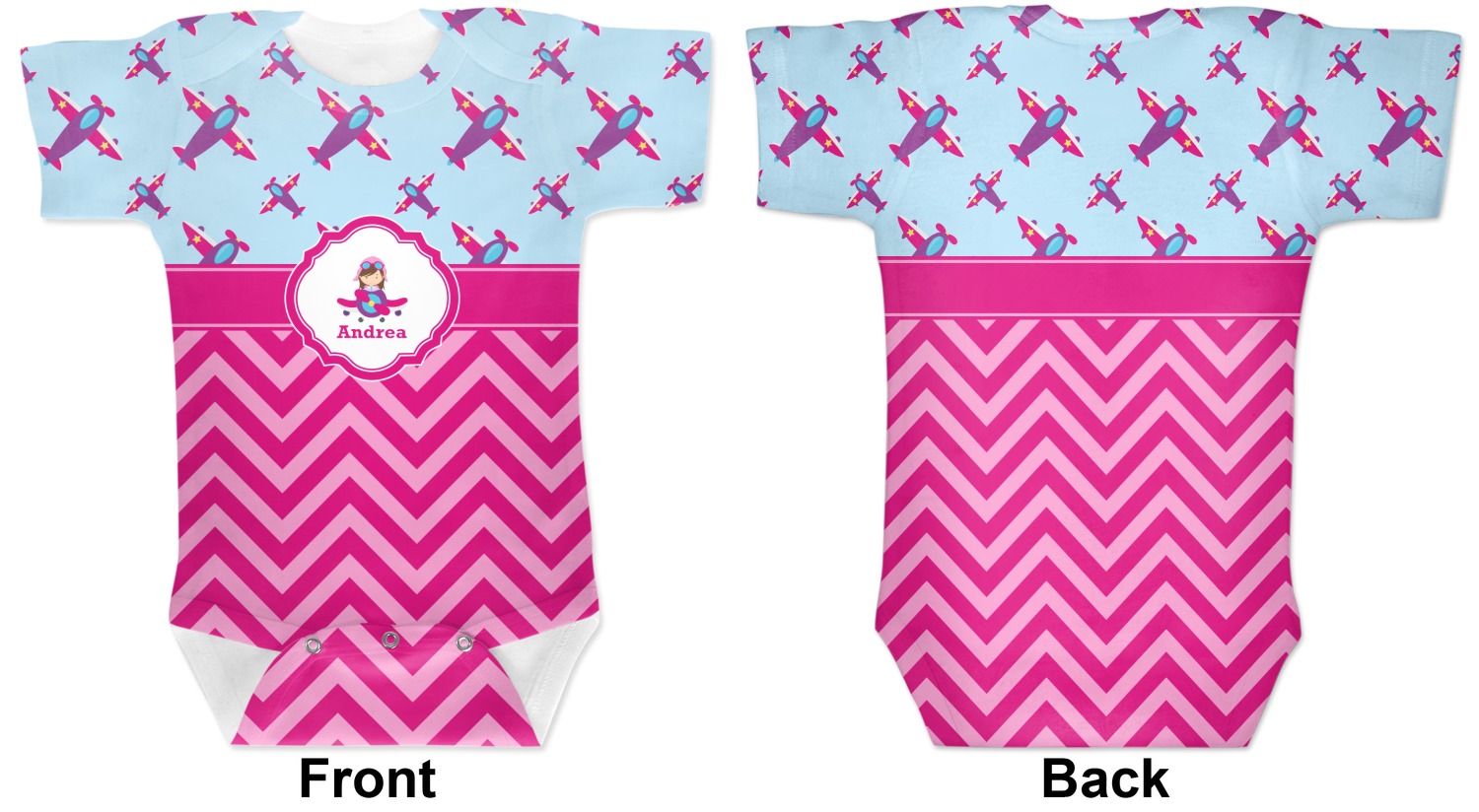 These cute baby bodysuits are made of stretchy, soft-to-the-touch polyester, making them very comfortable for your baby. These baby bodysuits also have snaps on the bottom to give easy access during changing times. Your personalization covers the entirety of this custom baby bodysuit, but the interior is white in color. As these are unisex baby bodysuits, they will work perfectly as baby girl bodysuits and baby boy bodysuits!