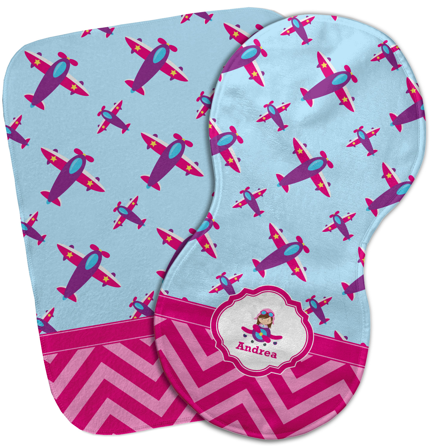 Choose your baby burp cloth from our two styles - Fleece (rectangular) or Microfiber Velour (peanut shape). The lightweight and absorbent design makes each burp cloth multipurpose; use them as a burp pad, a lap pad, a changing table, or a spare cloth to clean up any baby mess. Your customization is displayed across the front with baby-safe ink to ensure extra comfort with a white backing.