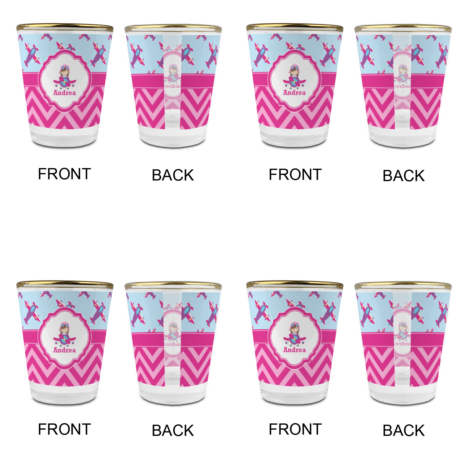 Aviation Designs for Glass Shot Glasses - 1.5 oz - with Gold Rim - Set of 4