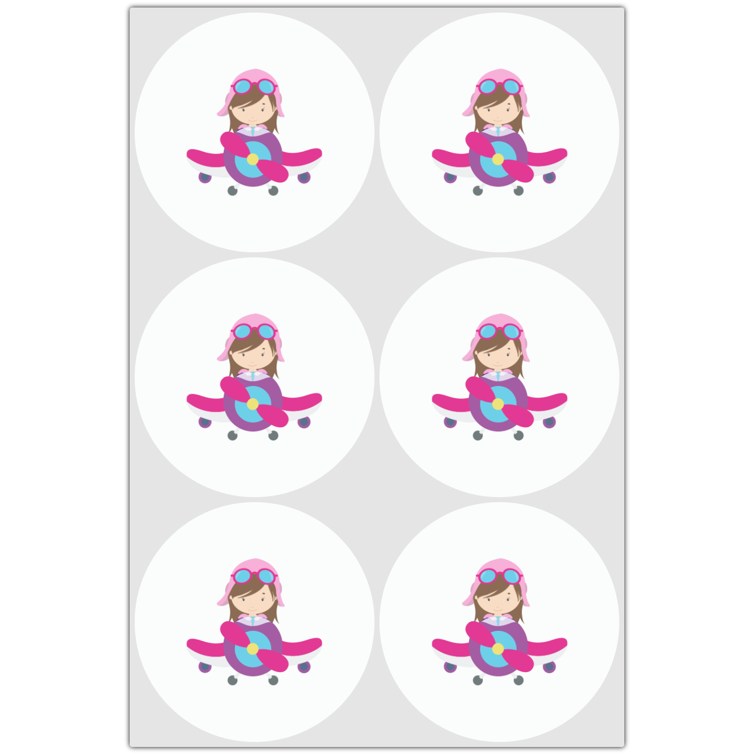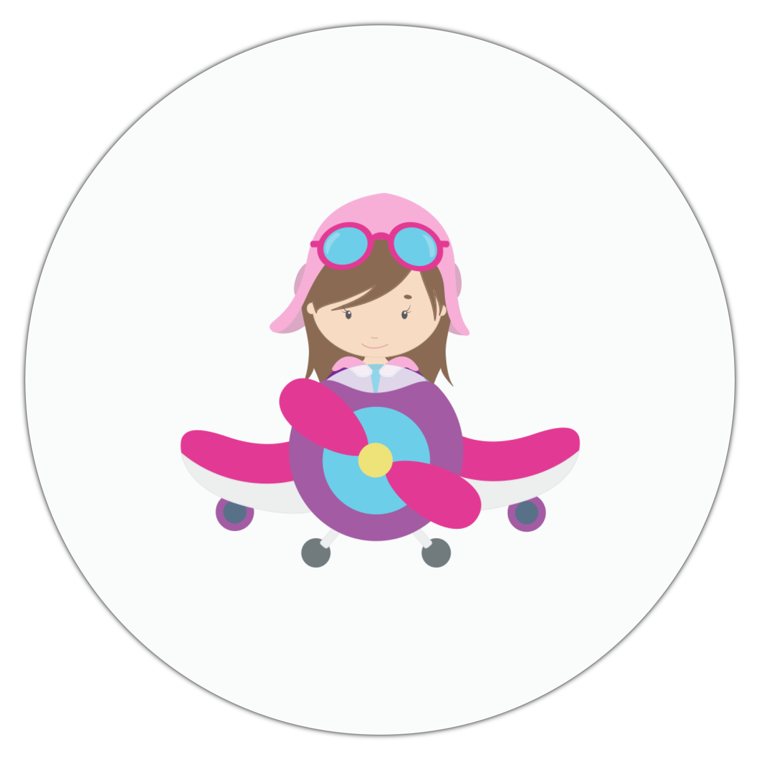 This Airplane themed design for girls features a little pilot in her own plane with her name just below it within a hot pink frame. The design also features planes in the sky above and pink chevron stripes below with a hot pink band to tie it all together.