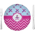 This Airplane themed design for girls features a little pilot in her own plane with her name just below it within a hot pink frame. The design also features planes in the sky above and pink chevron stripes below with a hot pink band to tie it all together.