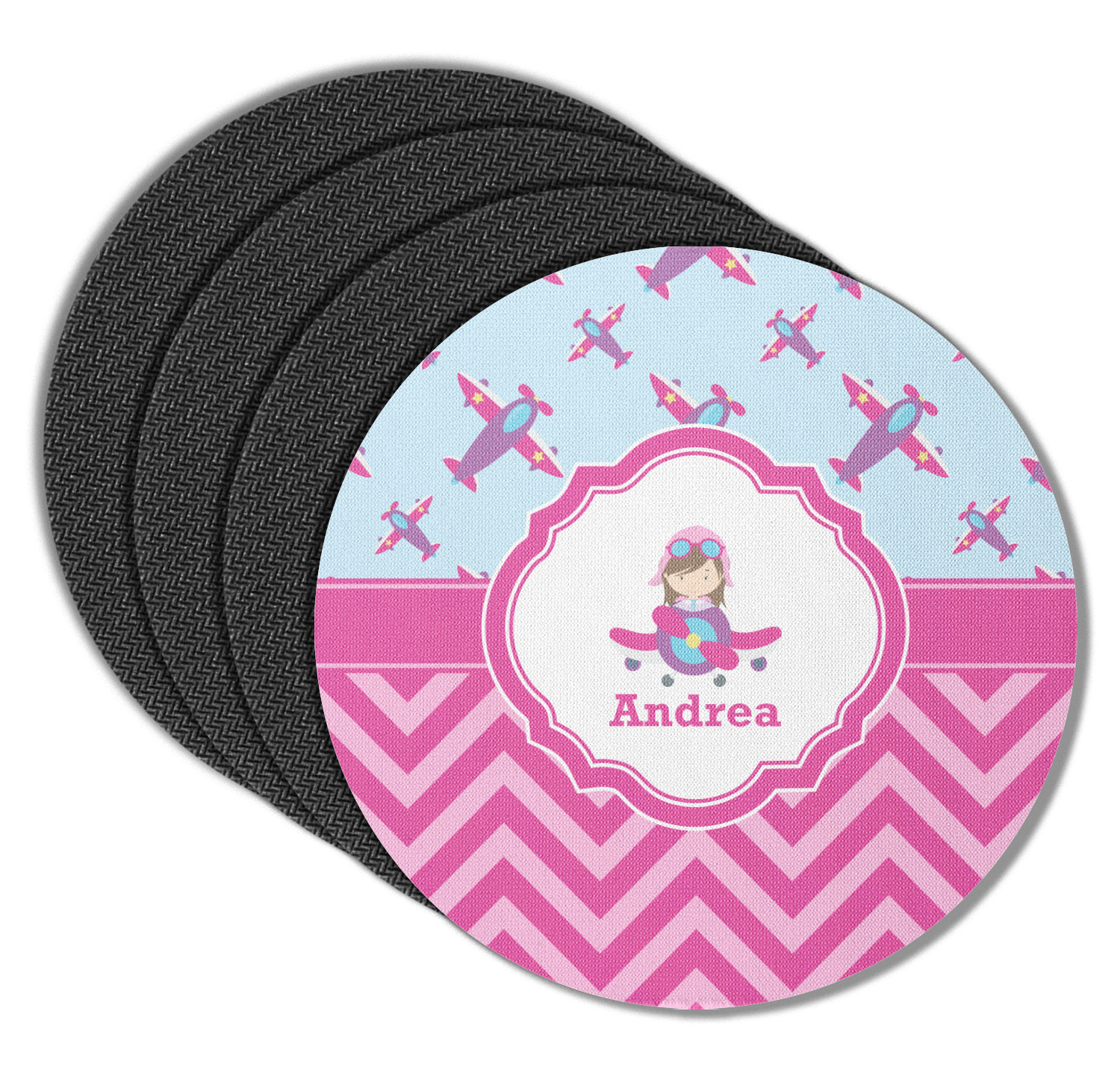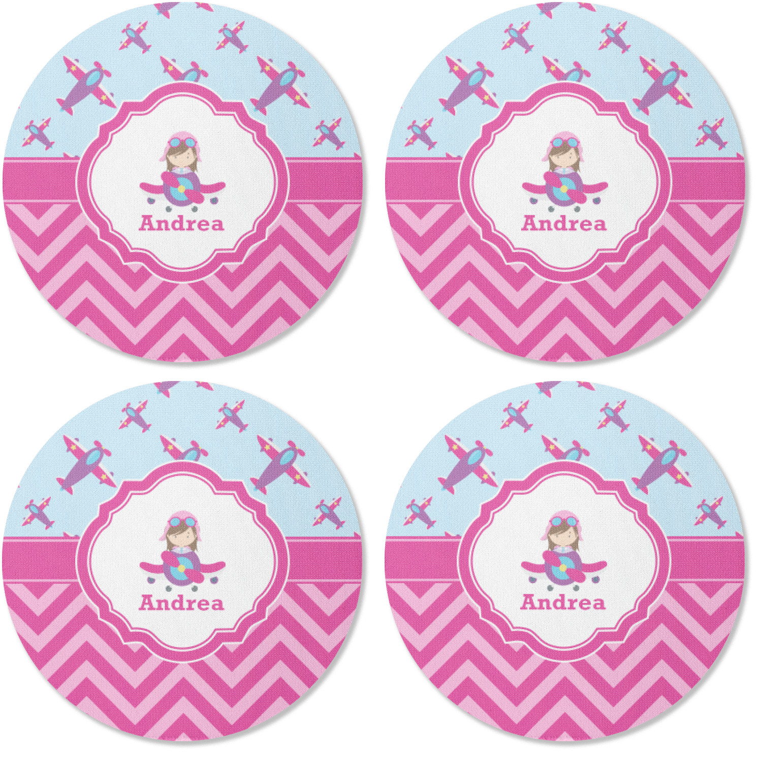 Planes Designs for Round Rubber Backed Coasters - Set of 4