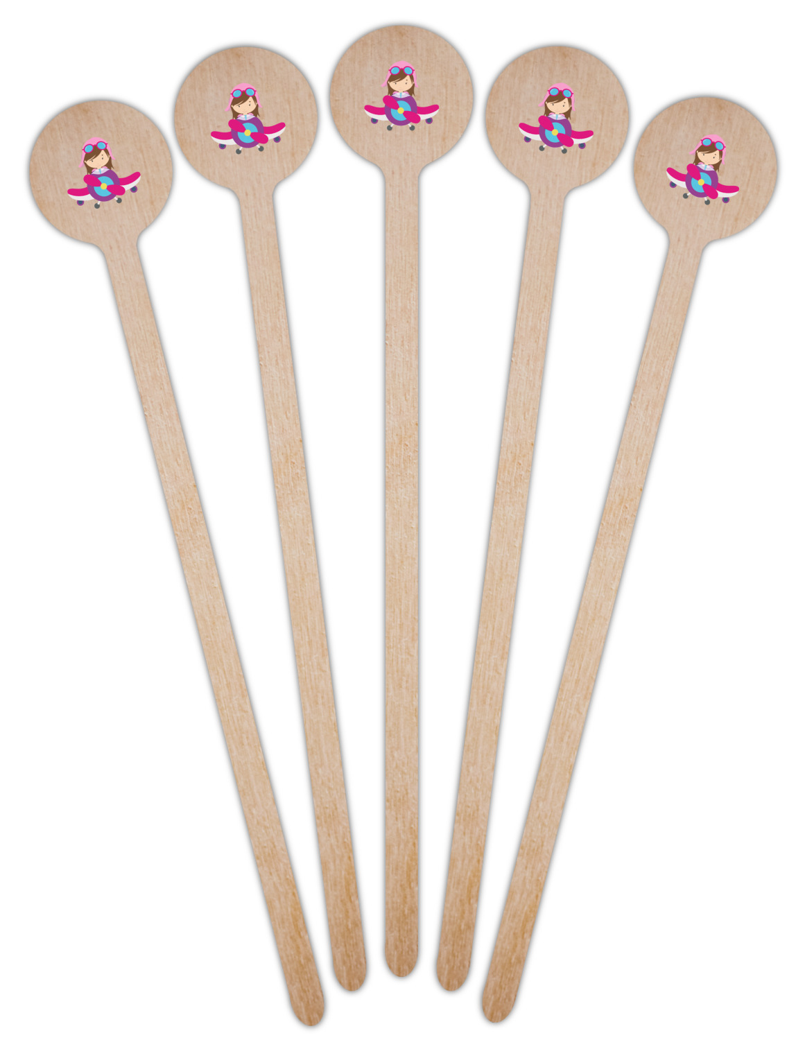 This Airplane themed design for girls features a little pilot in her own plane with her name just below it within a hot pink frame. The design also features planes in the sky above and pink chevron stripes below with a hot pink band to tie it all together.