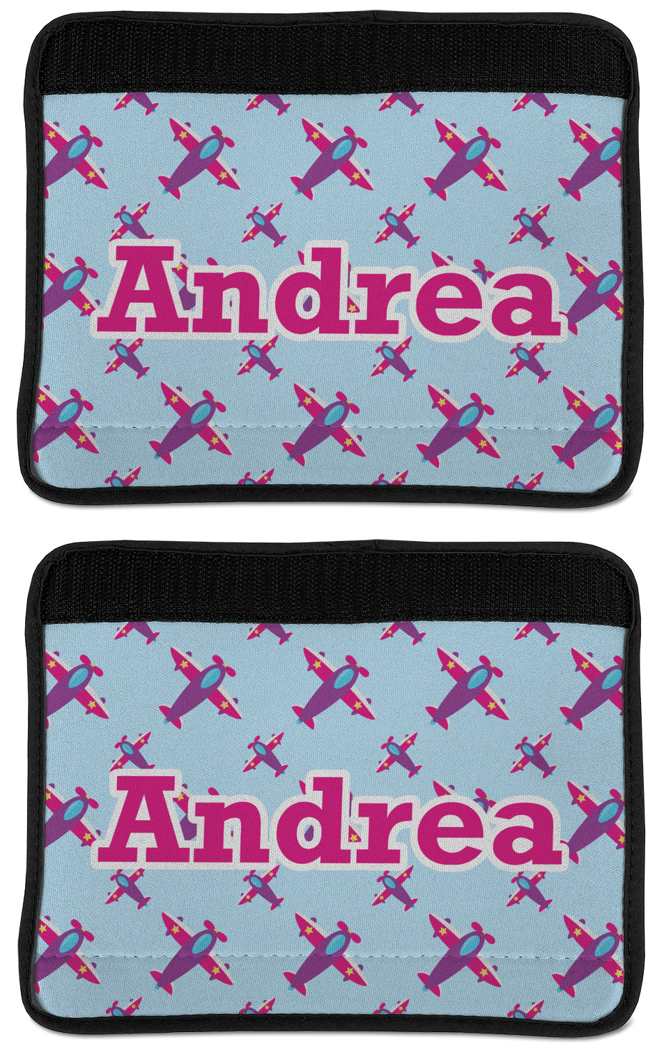 Made from neoprene, our seat belt strap covers wrap around the belt itself and have a Velcro tab for easy attachment and closure. The belt's edges are trimmed with a black polyester for a secure finish. Each cover is 9.5 by 7 inches when open and 9.5 by 2.5 inches when closed. We print your personalized design on the face of the seat belt pad.