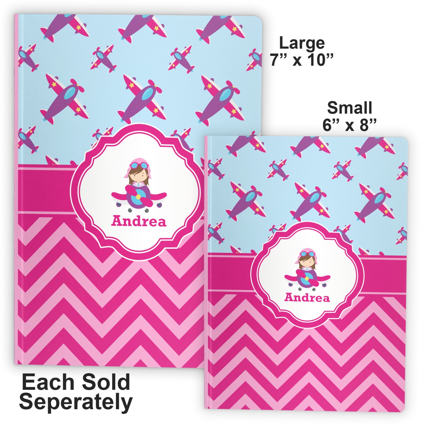 We offer these notebooks in two different sizes. The small notebook is 8" x 5.75", and fits snugly in purses or totes. The large notebook measures at 10" x 7.25", and can be carried in briefcases and backpacks.