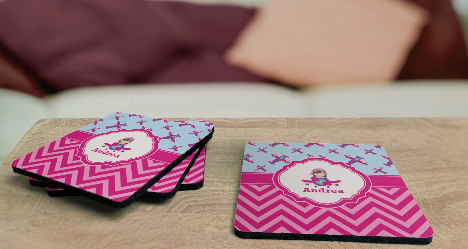 Aviation Designs for Square Rubber Backed Coasters - Set of 4