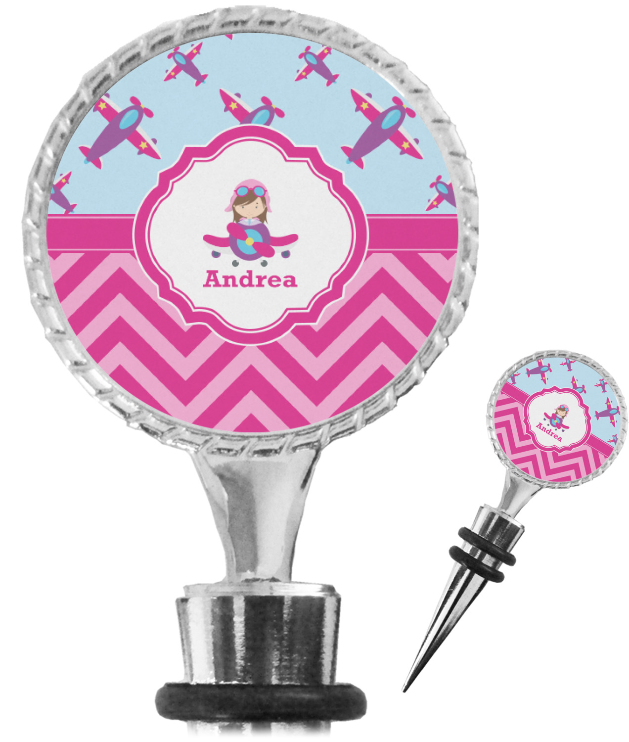 The top part of your bottle stopper is comprised of a zinc ring that displays your customization(s) in its middle, on both sides. The ring is heavy duty, with a bright chrome finish. The body of the wine stoppers have two silicone rings to provide an airtight seal. These wine bottle stoppers measure at 1.625" L x 0.8125" W x 4.625" H; your custom wine stopper is meant to fit into most standard-sized wine bottles.