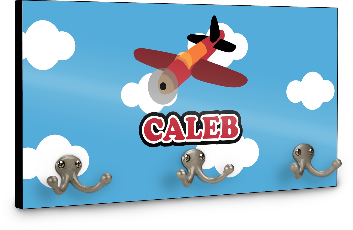 Calling all aviation enthusiast! Soaring through on a backdrop of a beautiful blue cloudy sky is our fun flying plane brightly colored in shades of reds and oranges. Don't forget to add that special touch by customizing the design with the name of your choice.