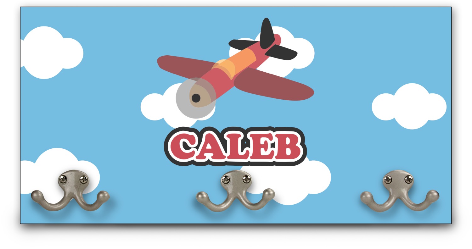This coat rack is the perfect way to add some personality to your wall or entryway. The board is made of a strong maple that is approximately 16" x 8". The three 2-prong hooks are a sturdy metal that have two screws attaching them to the board. Your design is printed right onto the front of the board while the back and sides are a simple black.
