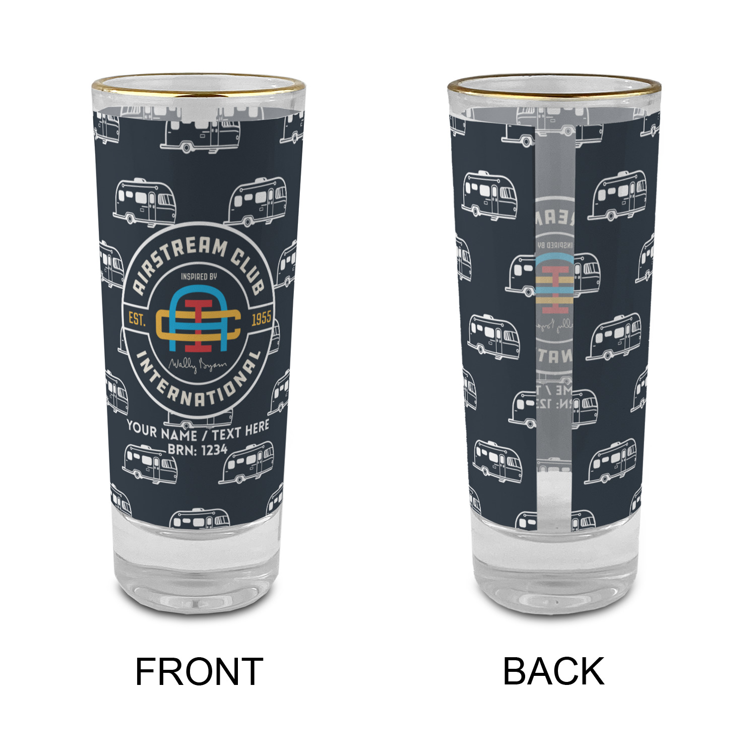 These glass shooter glasses are printed in full color with the design of your choice. These are a tall shooter 2 oz size and stand 4" tall. The print is a full wrap design to boldly display your personalization.