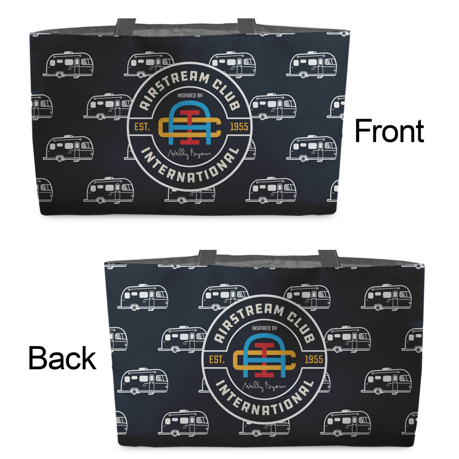 These beach totes are handmade here in the USA. Fabric is printed with your design. The tote is then sewn from the fabric pieces, lining and handles added.