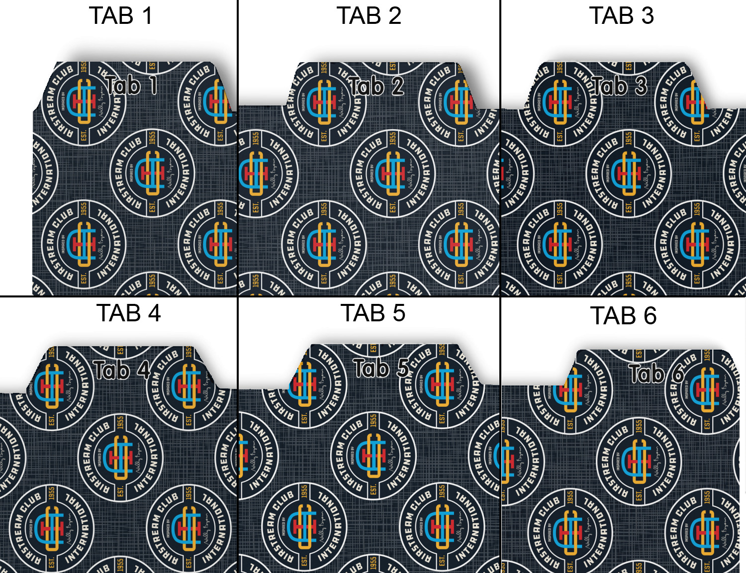 What better way to outfit your new custom personalized binder than a set of custom tab dividers? These can be made to compliment your binder design to take it to the next level!