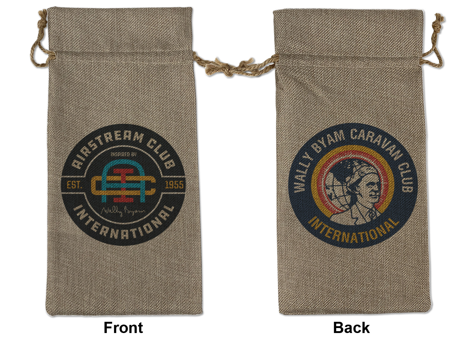 We sell our Burlap Gift Bags in 3 variant sized bags. Made with burlap polyester, each personalized bag can be secured with a twine drawstring pull. Your custom design is available to print on one side or both sides - completely up to you! The sizes of the bags measure approximately 4.5" x 6.5" for the smallest size, 6.5" x 8.0" for the medium size, and 6.5" x 13.5" for the large-sized bag.