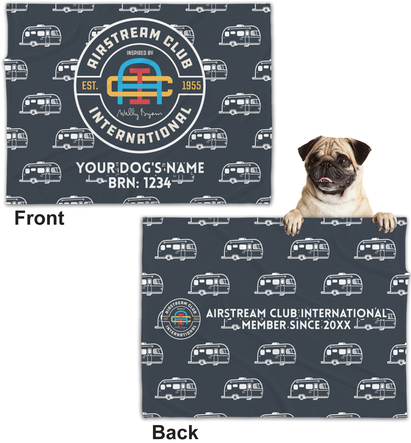 These dog blankets are crafted from a gentle, soft-to-the-touch, minky material. We print your customizations, either matching or differing, on both the top and underside of the blanket. These personalized dog blankets are available in two sizes: regular and large. Our regular size, at 40" x 30", accommodates small and some medium size dogs. At 60" x 50", our large dog blanket is a better fit for bigger breeds. Though specialized for dogs, these blankets still make a thoughtful gift for your favorite feline, or any other pet in mind!