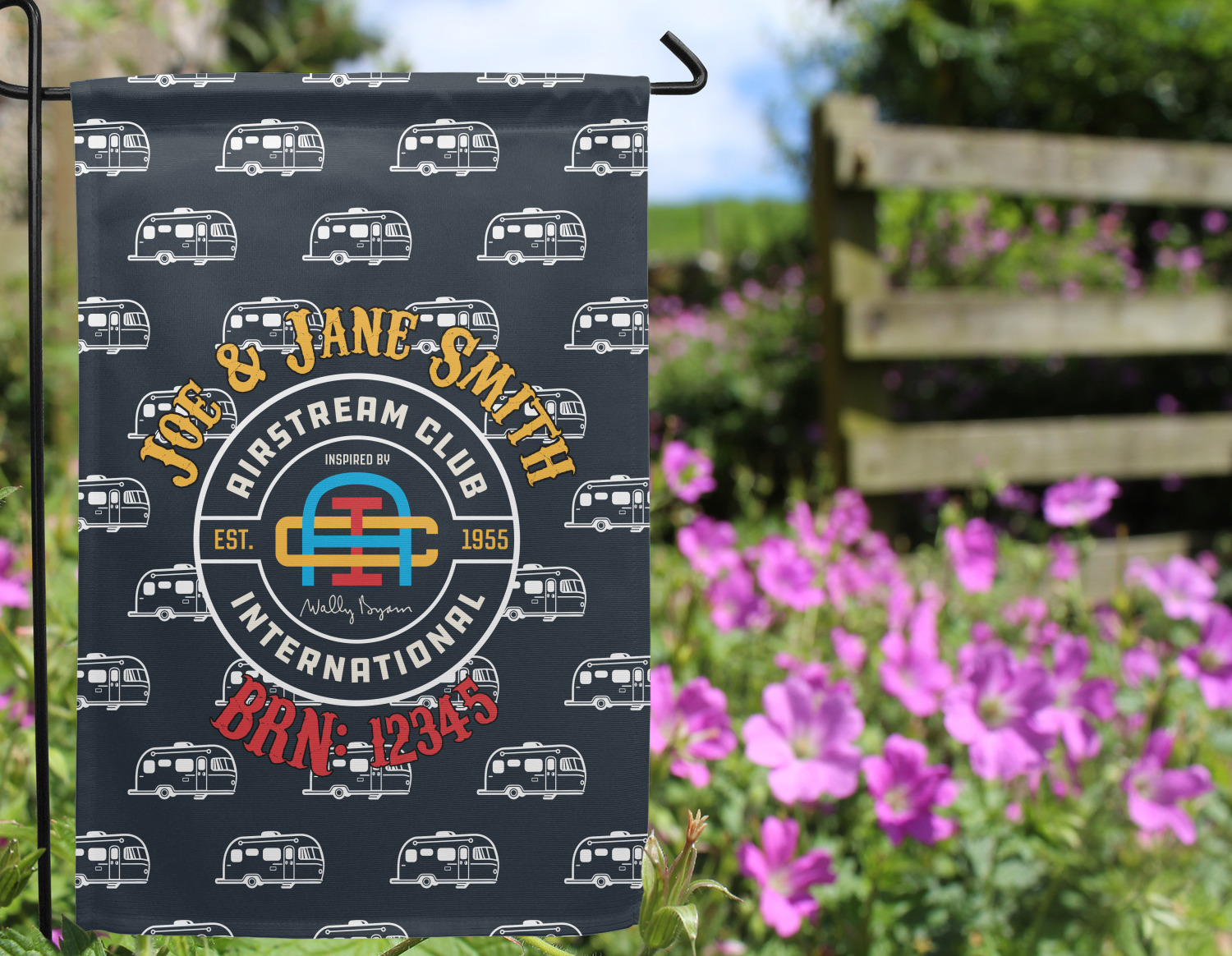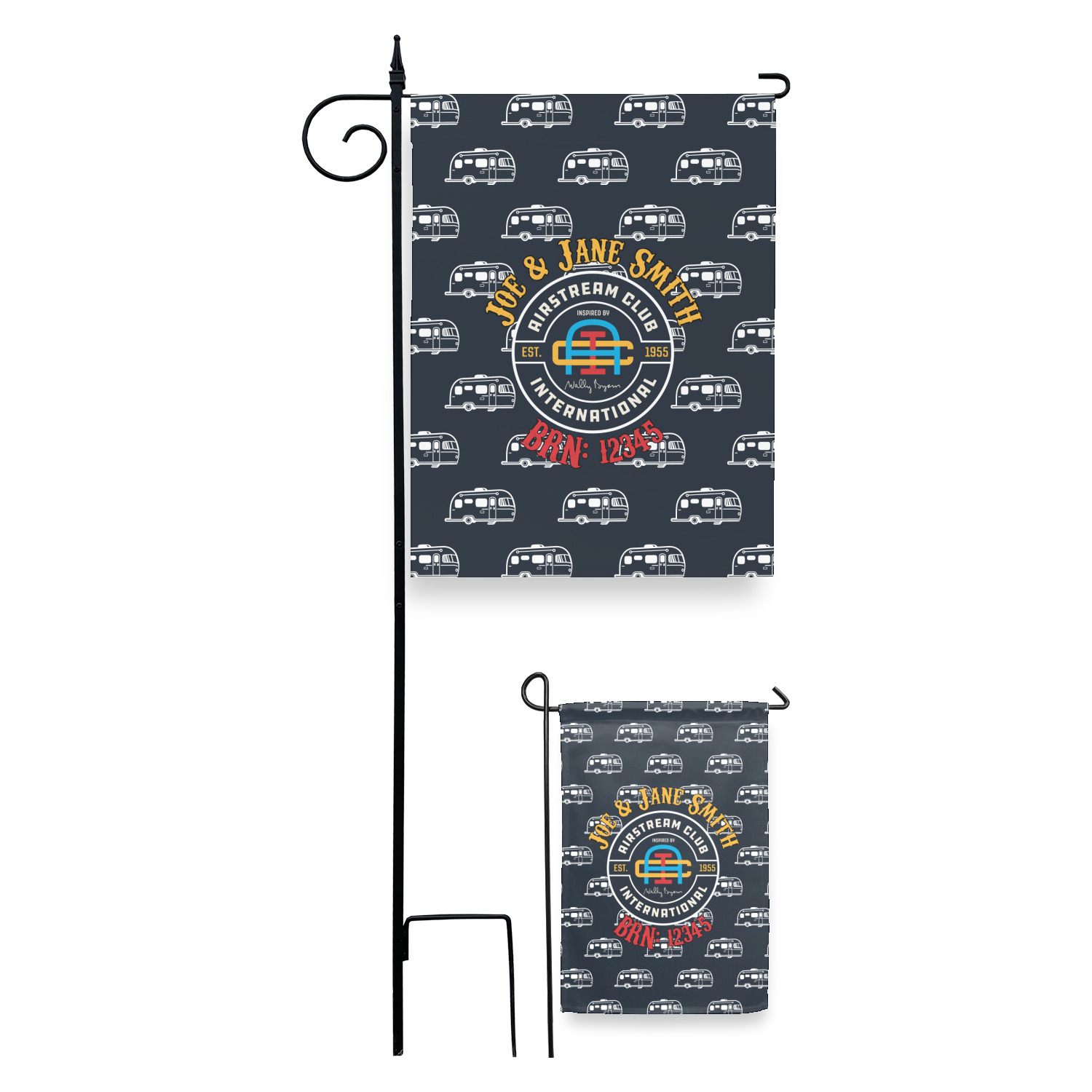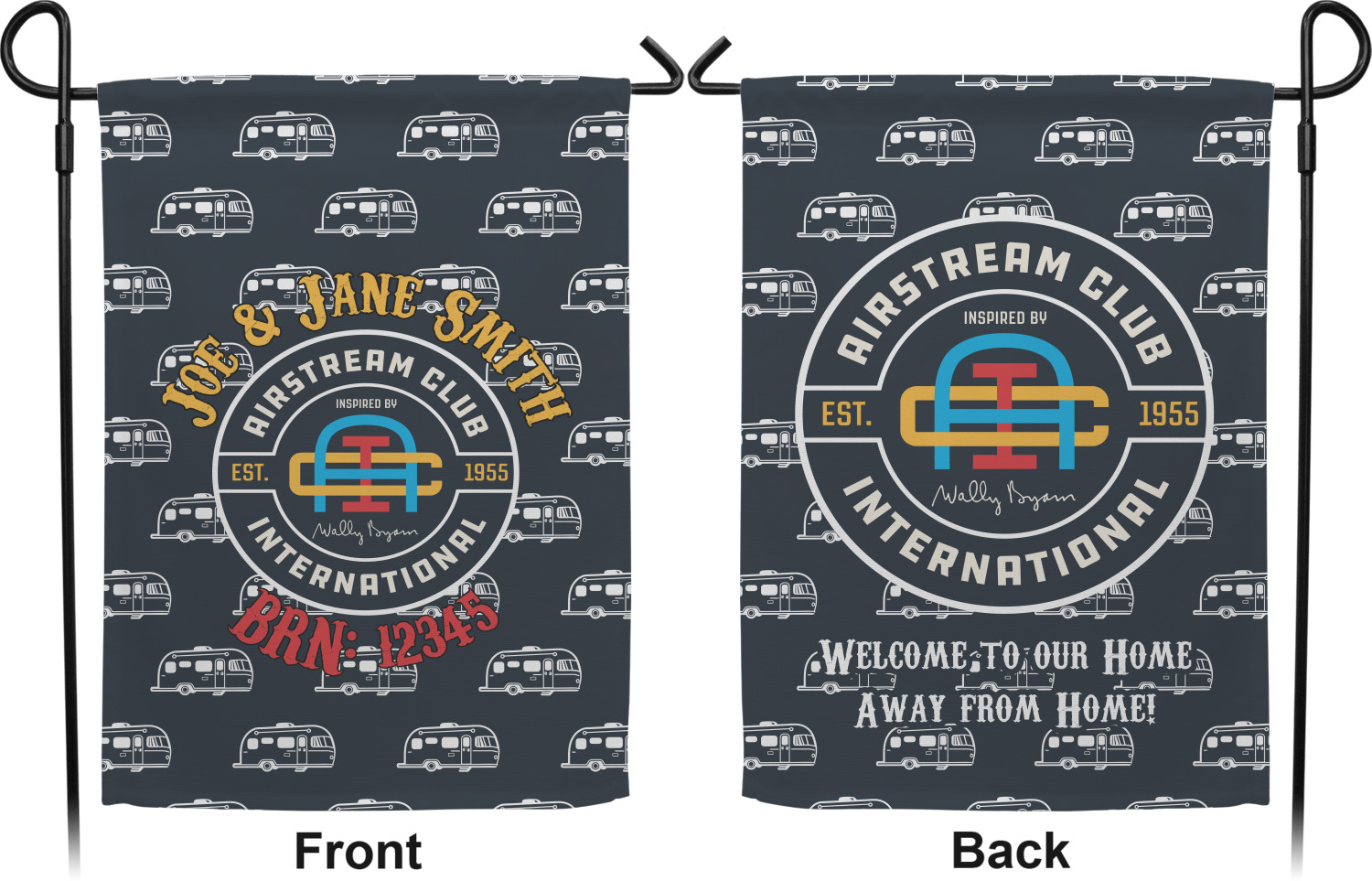 These custom garden flags are made of a durable, double-ply, polyester weave, allowing them to withstand the elements year round. The small flags measure at approximately 12 by 18 inches. The large flags measure out to 28 by 37 inches. You can order these decorative flags with your customization printed on the front only, or the front and back.