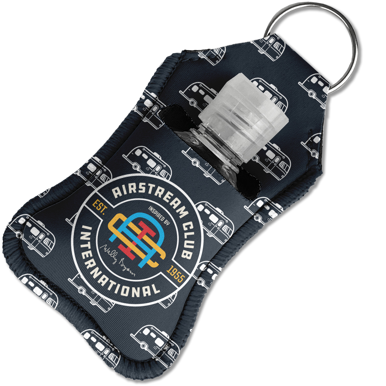 Each hand sanitizer holder comes with its own empty travel-sized, refillable hand sanitizer sure to fit snug in your customized sanitizer case! Our hand sanitizer cases are a durable, yet soft neoprene material sure to last any daily activities or travel agenda. Customize and personalize a hand sanitizer bottle holder with one of our two sizes - small (4.25" x 2.25") or large (5.5" x 2.5"). Each travel sanitizer holder comes with a keyring for attachment on bags, keys, or more!