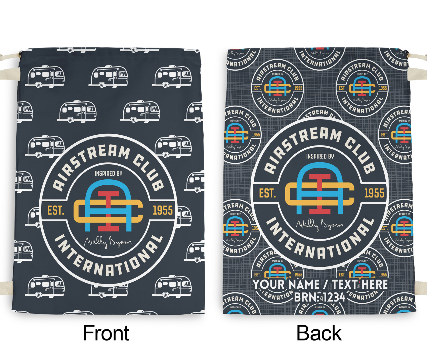 Carry your laundry in style with these customized laundry bags. Available in two sizes, featuring a natural colored woven strap and a cinch cord, these bags hold a lot of clothes or anything else you want to fit in them.