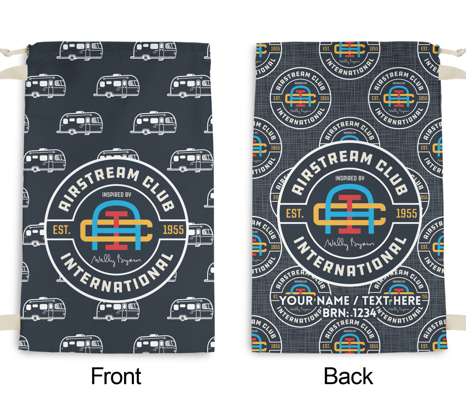 Carry your laundry in style with these customized laundry bags. Available in two sizes, featuring a natural colored woven strap and a cinch cord, these bags hold a lot of clothes or anything else you want to fit in them.