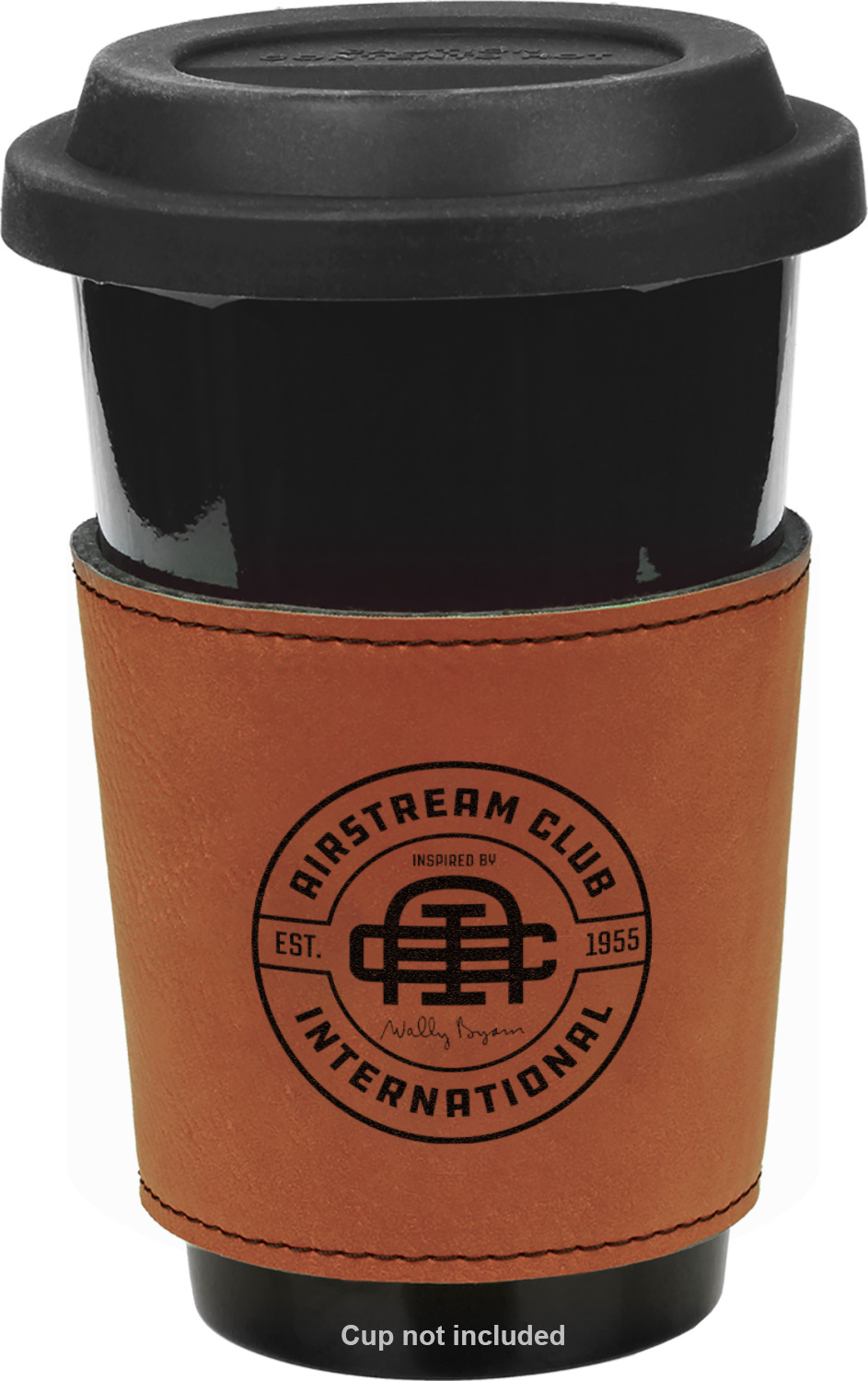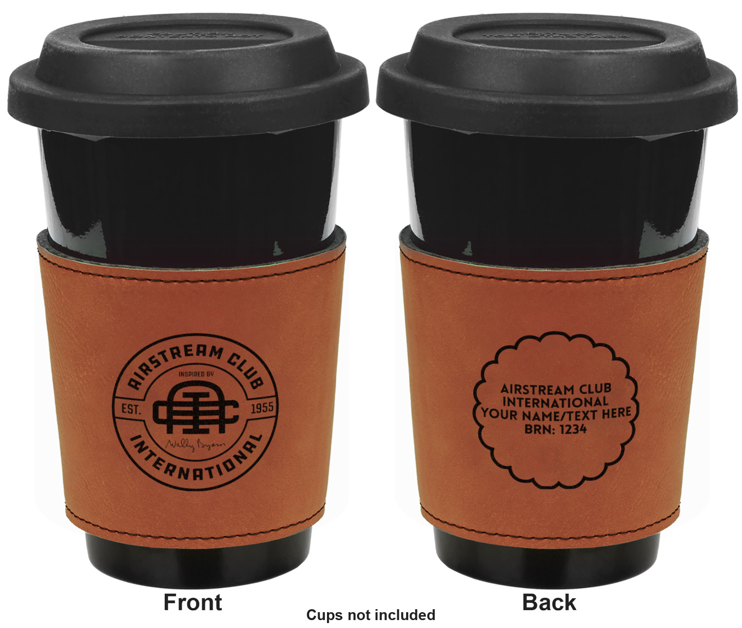 This cup sleeve is made from a suave, cognac-brown leatherette and finished with an intricate, black stitch. The interior of this can sleeve is fabricated from a thin foam material to help insulate your mug's contents. The sleeve is specifically made to suit tapered glasses or mugs, so the top's diameter is 3.5 inches, while the bottom's diameter is 2.75 inches. Your customized design will be laser engraved into the leatherette, leaving behind crisp, black imprint. With these products, we provide you with the option of engraving the front and back, or the front only.