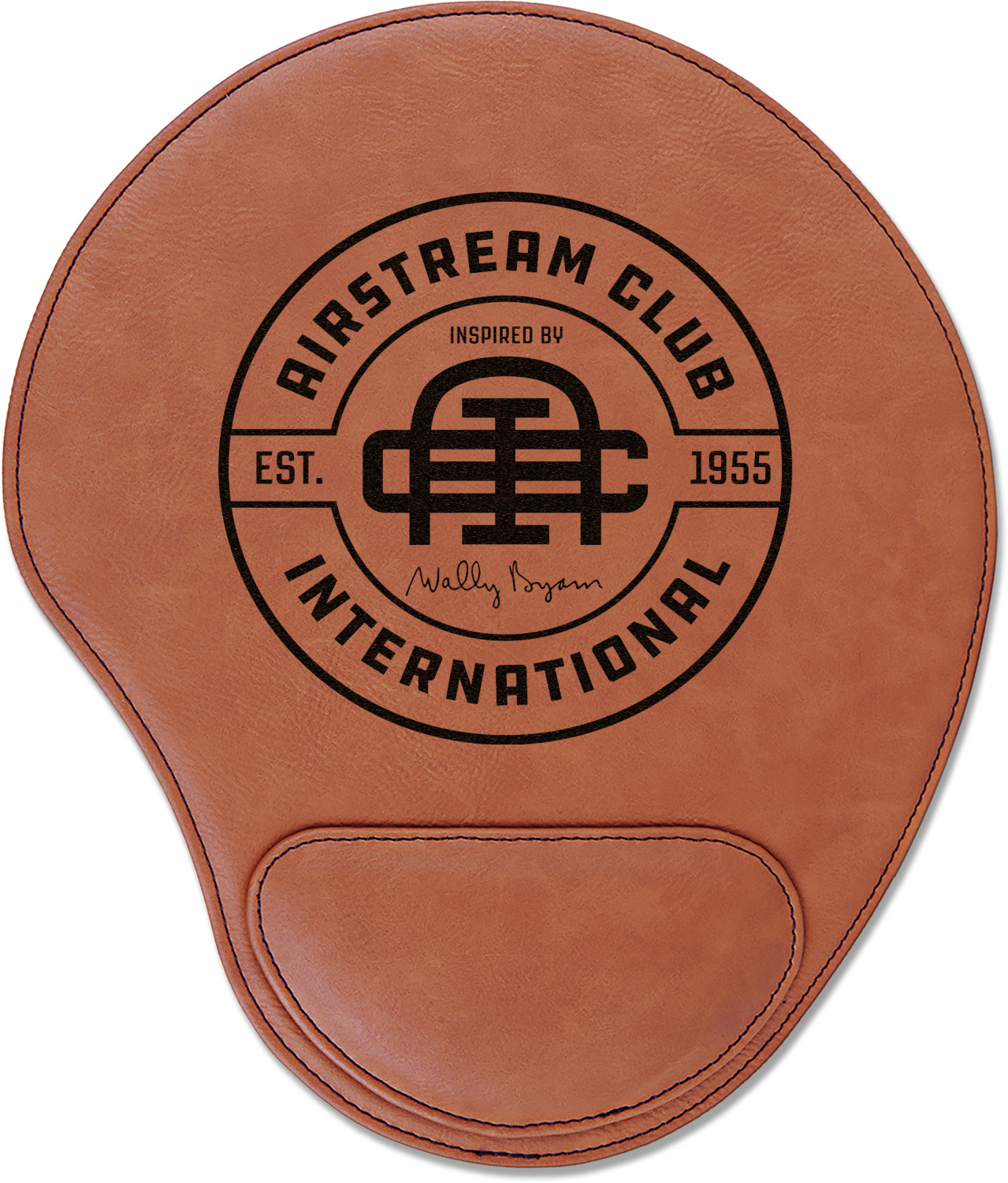 In a rounded shape, this mouse pad is made of a luxurious, cognac-colored leatherette. The nature of this material allows your mouse to glide smoothly across its surface. Strong stitching lines the edges to guarantee stability and strength. As added support for tired wrists, your personalized mouse pad features a supportive wrist rest at its bottom. This model measures at 10.25" x 9", while its wrist pad is approximately 5" x 2.75", with a thickness of 0.75". Your personalized design is laser engraved into the front face of this mouse pad.