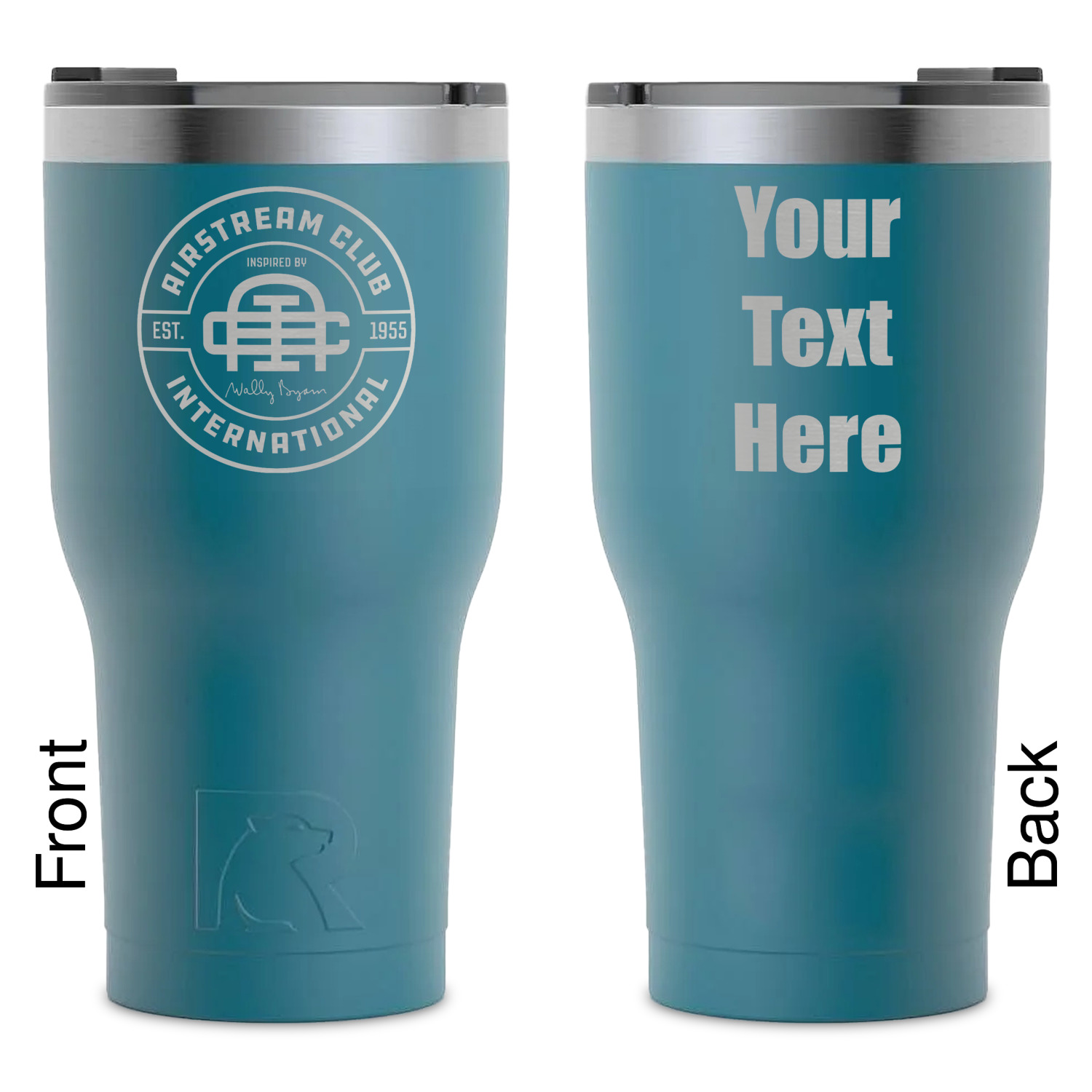 We sell these RTIC 30 Oz Tumblers in three different colors with two different engraving options. Choose from our selection of teal, white, or black. You can either choose to engrave the front only or both front and back. Your engravement will reveal the stainless steel material beneath the powder color coating, creating your personalization in a beautiful silver.