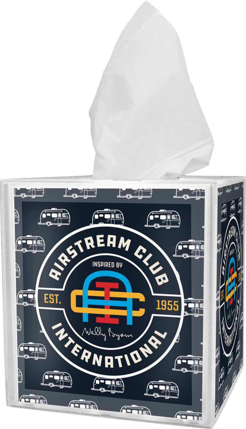 These tissue holders are built from durable acrylic and display your unique personalization on fine-quality vinyl inserts placed within the four sides and top. The box features two pieces, allowing you to easily switch out tissue boxes. On the sides, youll find ridges that ensure the top and base fit securely in place. The bottom of these tissue box holders has four, rubber, non-slip pads to prevent the box from scuffing any surface you decide to display it on. Each box can fit a standard 5 by 5-inch box of tissues.