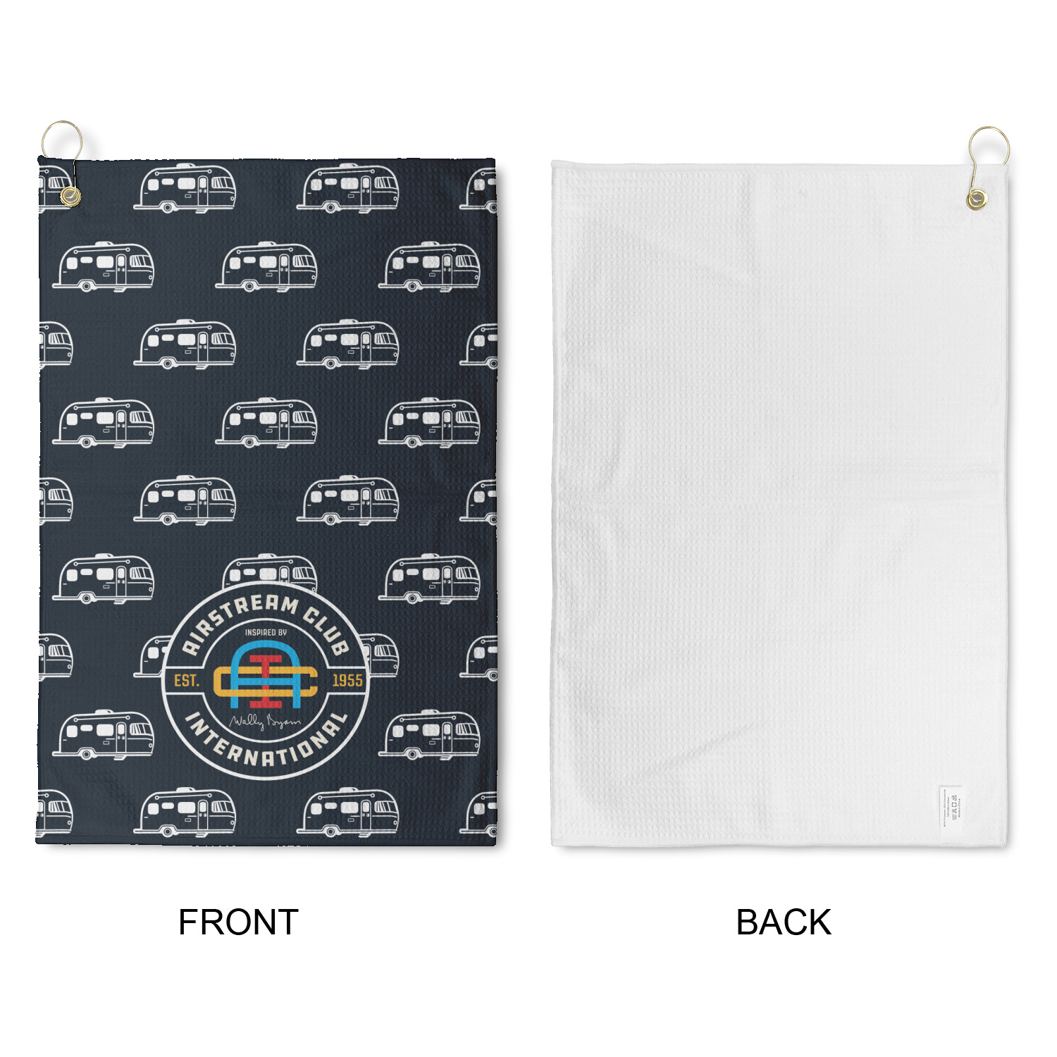Personalize your design for your towel in our design studio then we will custom print and make it for you. The heavy duty brass grommet and hook are perfect for hanging anywhere you need it to. The waffle weave material is a durable microfiber material that will absorb up to 7 times its weight.