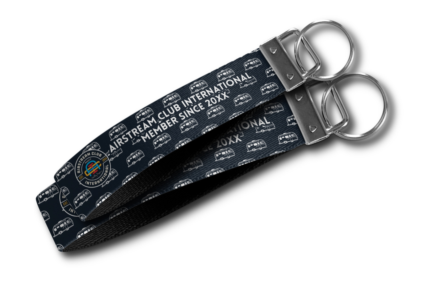 These key fob keychains are made from a polyester weave, right here in the USA. They feature a silver, metal clasp, attached to a round keyring. The piece gives the personalized wristlet a beautiful, finished look. Your customized design is printed on the outside of the keychain strap. We carry these wristlets in two sizes: small, which is 5 inches in width, and large, which is 5.5 inches in width.