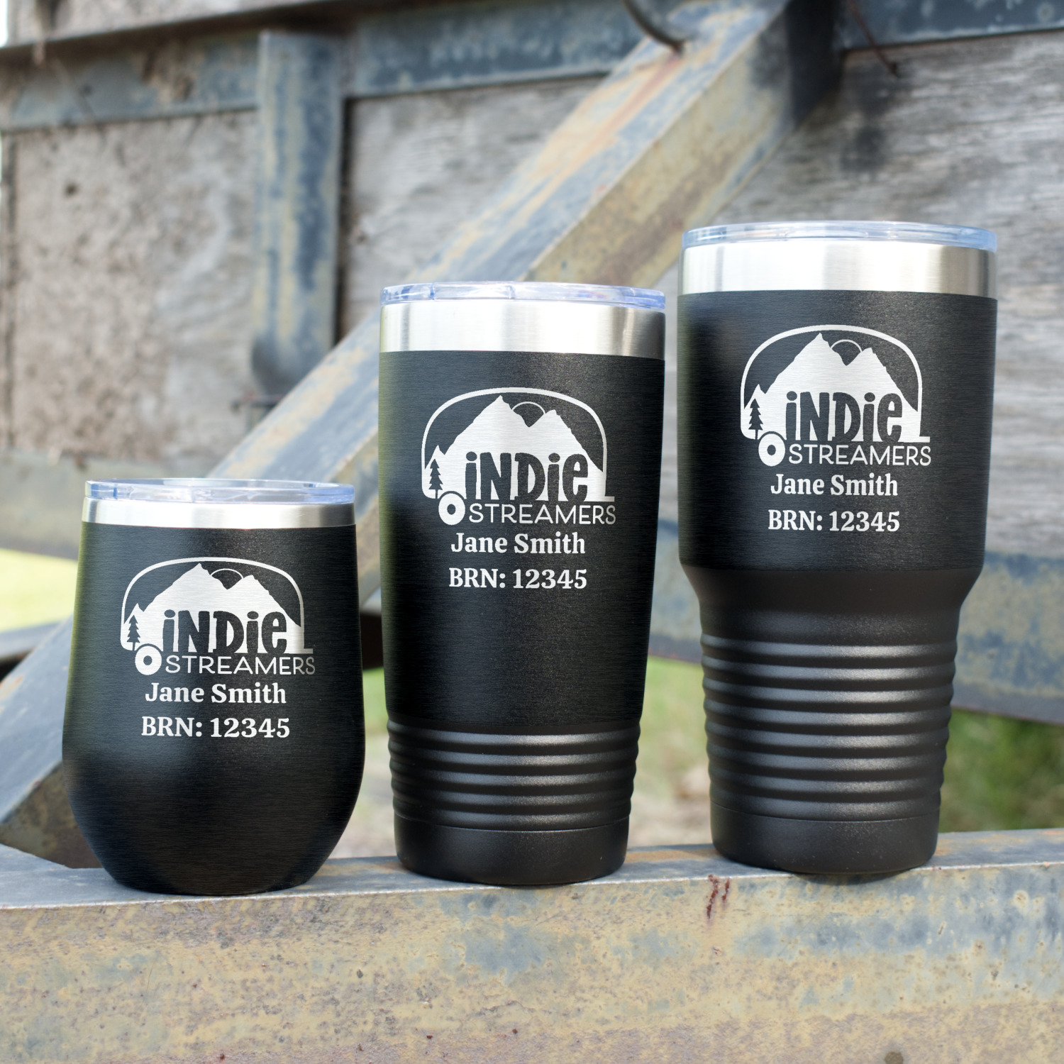 Available in 8 unique colors, these cups are crafted from 18/8 stainless steel and powder coated for their durable finish. With the 8 colors being Black, Pink, Red, Teal, White, Grey, Royal Blue, and Olive Green, you are sure to find a cup to fit your personality. You can chose to engrave on the front or the front and back of the cup. Use our design studio to design your own cup and we laser engrave it for you.