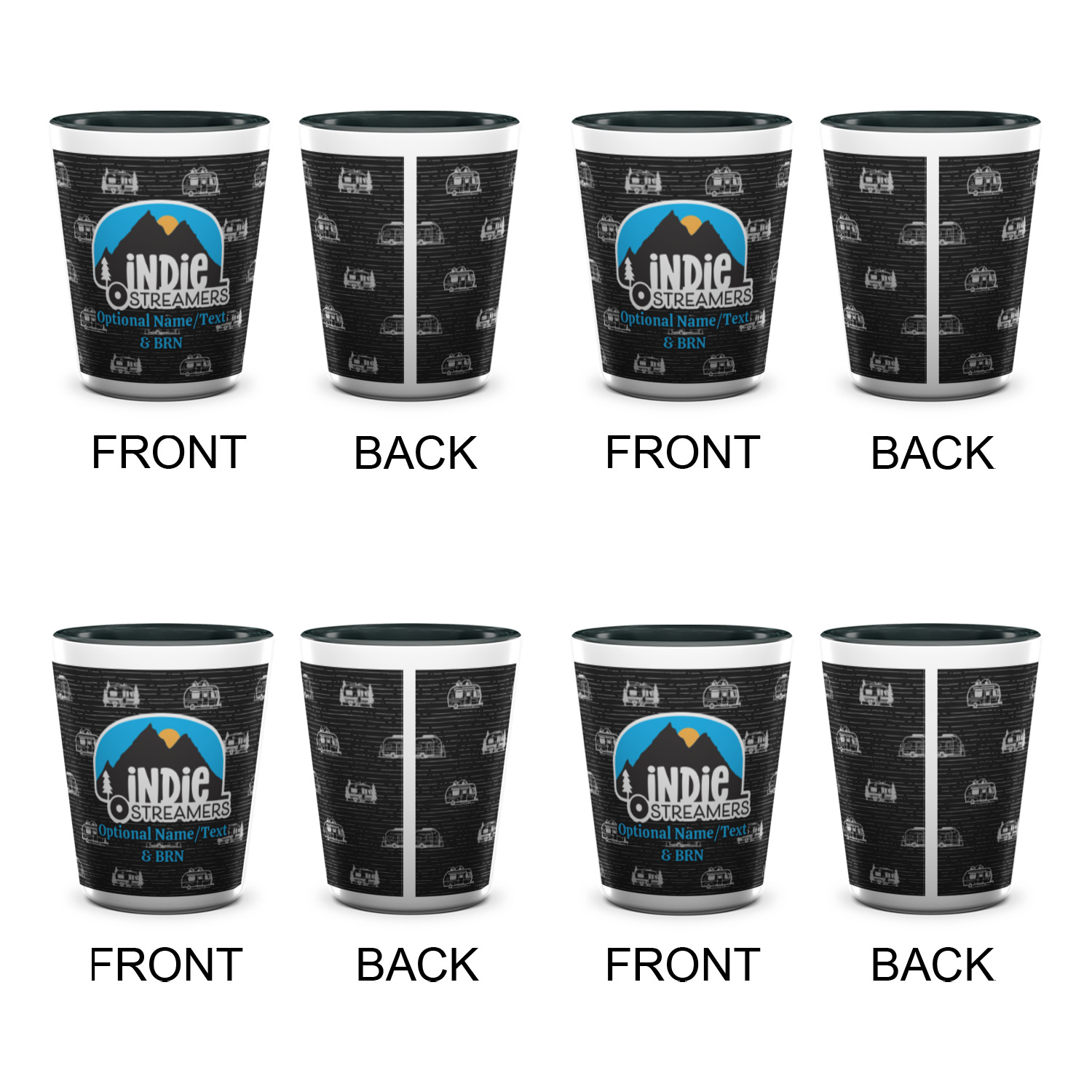 Made from ceramic these shot glasses are printed in full color with the design of your choice. These are a standard 1.5oz size and stand 2.25" tall. Available in a full white ceramic or a two-tone with a black color inside the shot glass. Buy a single or a set of 4, all of which can be designed separately to get you just what you want and need.