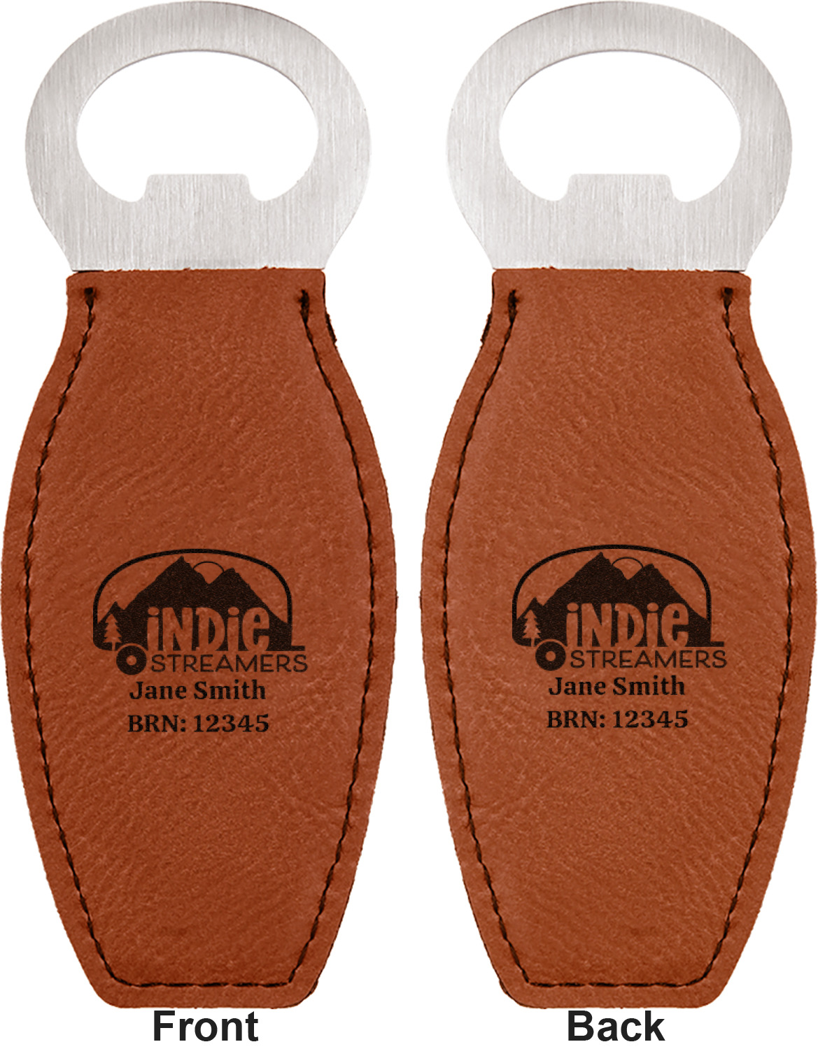Built from stainless steel, these custom bottle openers are wrapped in a cognac-colored leatherette. Sharp, black stitching lines the edges for extra durability and a finished touch. Your personalization is laser-engraved onto the surface of this leatherette, leaving behind a crisp, black coloration. At 4.6 by 1.8 inches, this beer bottle opener gives you much of leverage when trying to open a stubborn bottle. On the opposite end of the opener, you'll find a magnet that you can use to display your new, unique bottle opener!