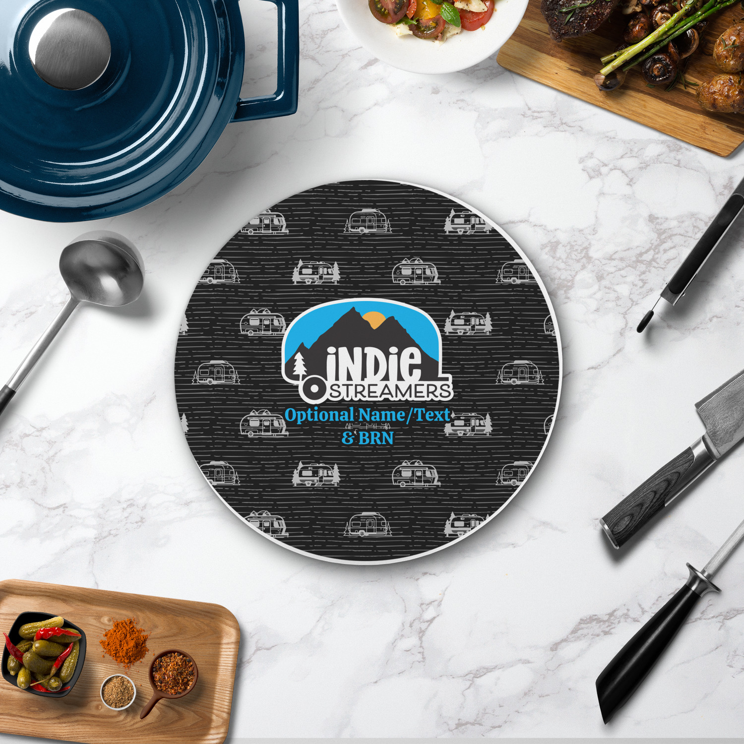 The round trivets can be customized with your own design, your own photo, or your own logo. You can add personalization, like a monogram, family name or initial to your uploaded design / art. You can also customize one of our designs and change the patterns, colors, personalization, fonts etc.