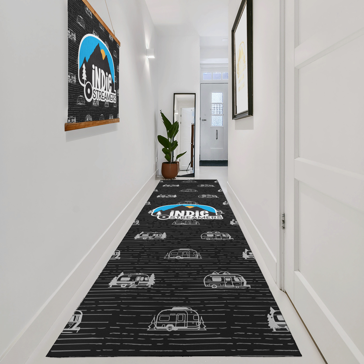 Our custom runner rugs and area rugsare both velvety soft and smooth, with a short pile, beautiful sewn corners and edges on the poly chenille face. We recommend adding an anti-slip mat under your runner rug to prevent it from sliding when under foot when placed on hard or smooth surfaces.