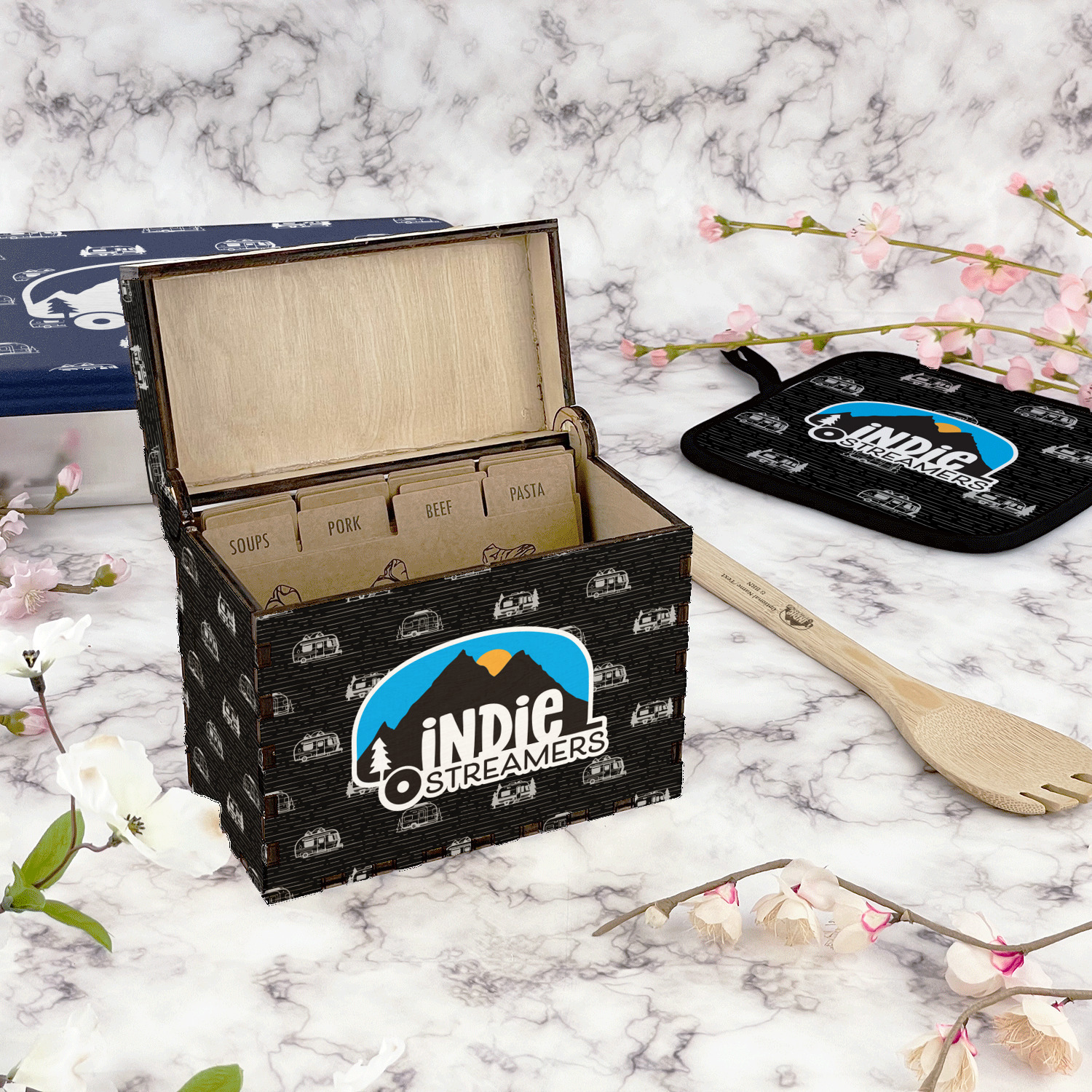 Using our design library you can design your recipe box to be personalized just for you. We will then laser engrave it and assemble it and have it ready for you to insert your recipe cards when you recieve it.