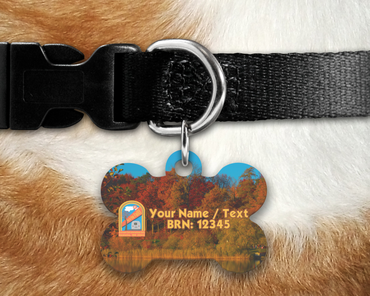 Our default design templates print your dog's personalization on the front and your contact information on the back; however everything is customizable, so you customize the patterns, the colors, the personalization, the contact information etc.