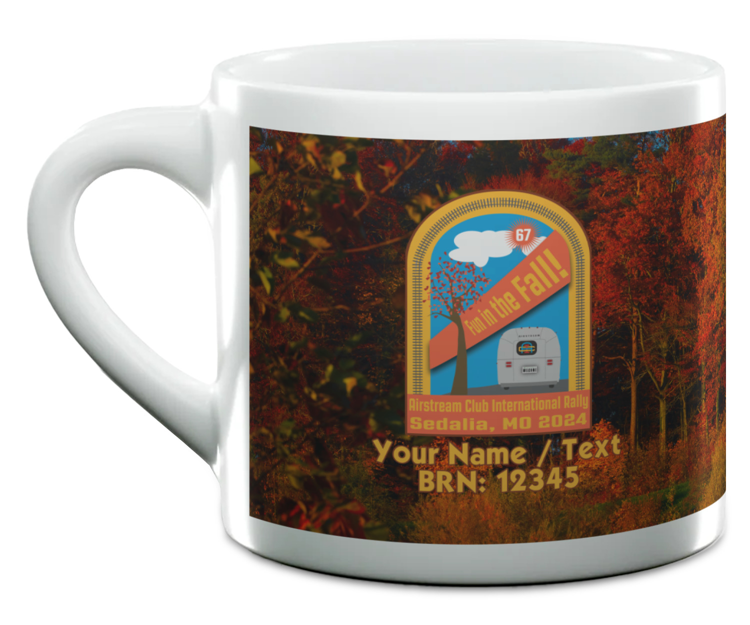 Each of our espresso mugs is a ceramic material sure to keep your drink warm. Personalize one cup for yourself, or order a set of 4! Its the perfect little gift for any coffee lover! We carry two sizes for you to personalize - 3 oz. (approx. 3.25" x 2.325" x 2.625") or 6 oz. (approx. 4" x 2.9" x 2.9"). Our 3 oz. mug is perfect for that single shot espresso while our 6 oz. mug can be your next favorite cappuccino cup holding two shots of espresso!