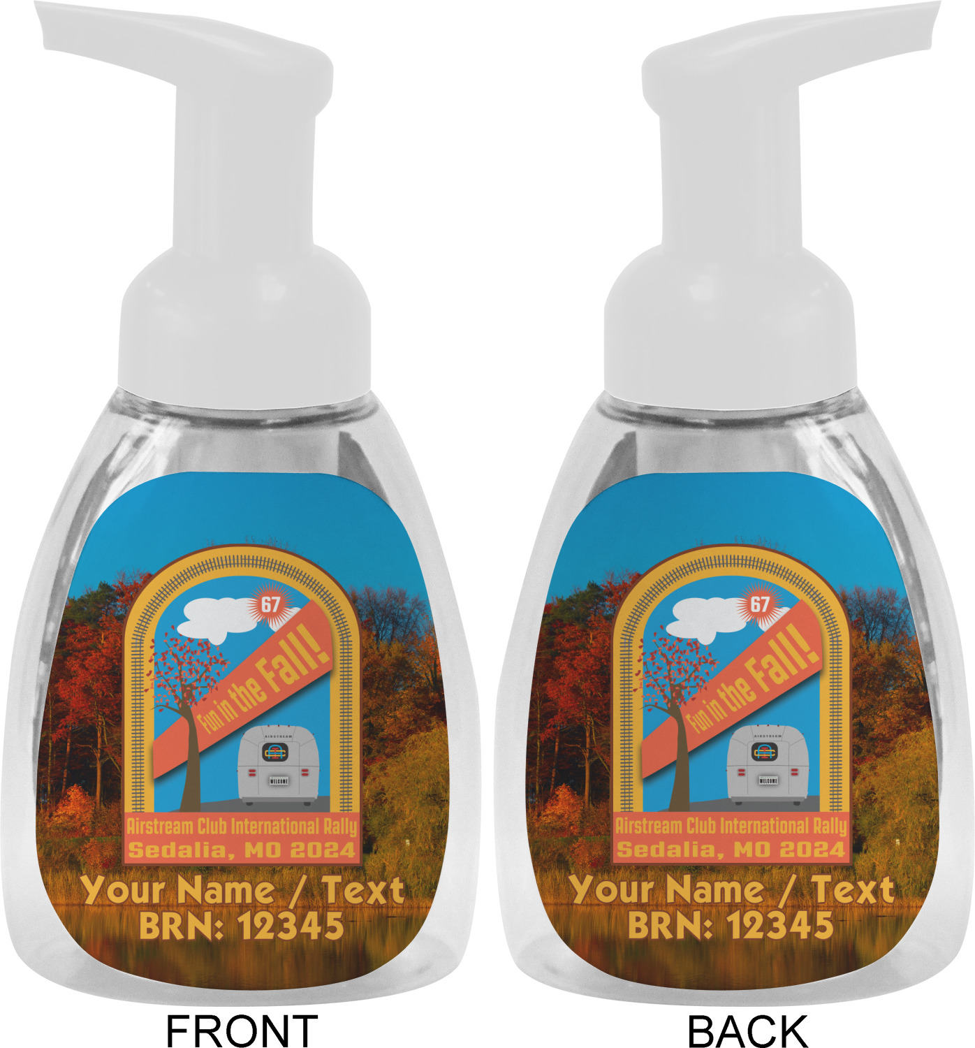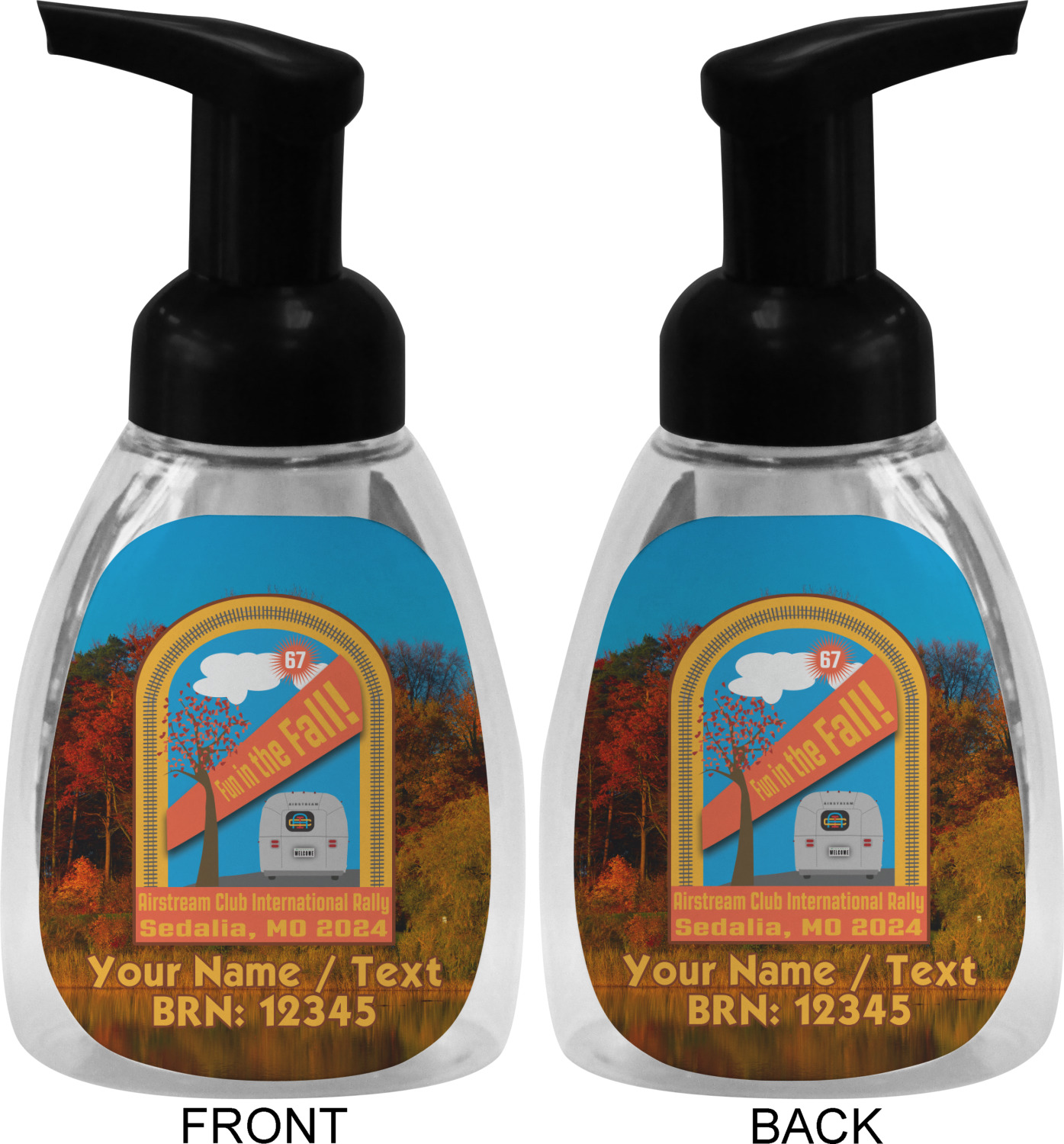 This soap dispenser is made of a robust plastic and has a clear base. The included soap pump is available in black or white color. This dispenser is 6.5 inches tall, 3 inches wide, and 2 inches deep. We display your customized designs on the front and back sides of these foaming hand soap dispensers.