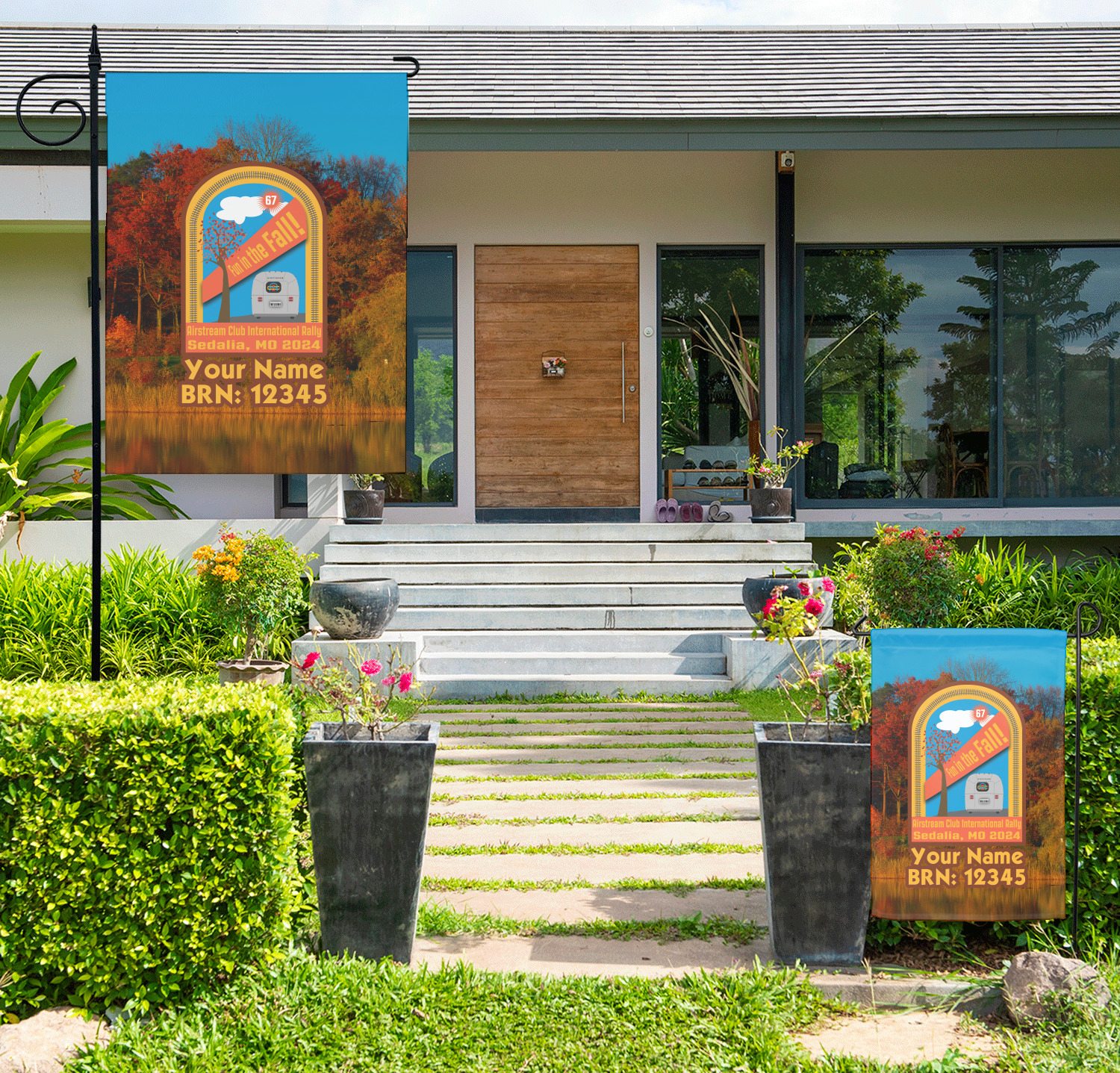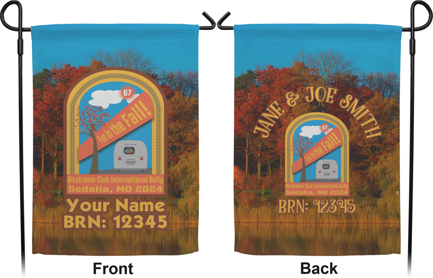 These custom garden flags are made of a durable, double-ply, polyester weave, allowing them to withstand the elements year round. The small flags measure at approximately 12 by 18 inches. The large flags measure out to 28 by 37 inches. You can order these decorative flags with your customization printed on the front only, or the front and back.