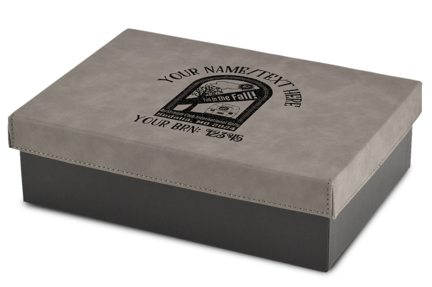 These gift boxes are available in 3 different sizes to accommodate various sized gifts. Available in gray as a neutral color for any occasion as well as to showcase your design boldly. Engraved with a laser this high quality paper board and faux leather gift box is unique and makes any gift stand out.