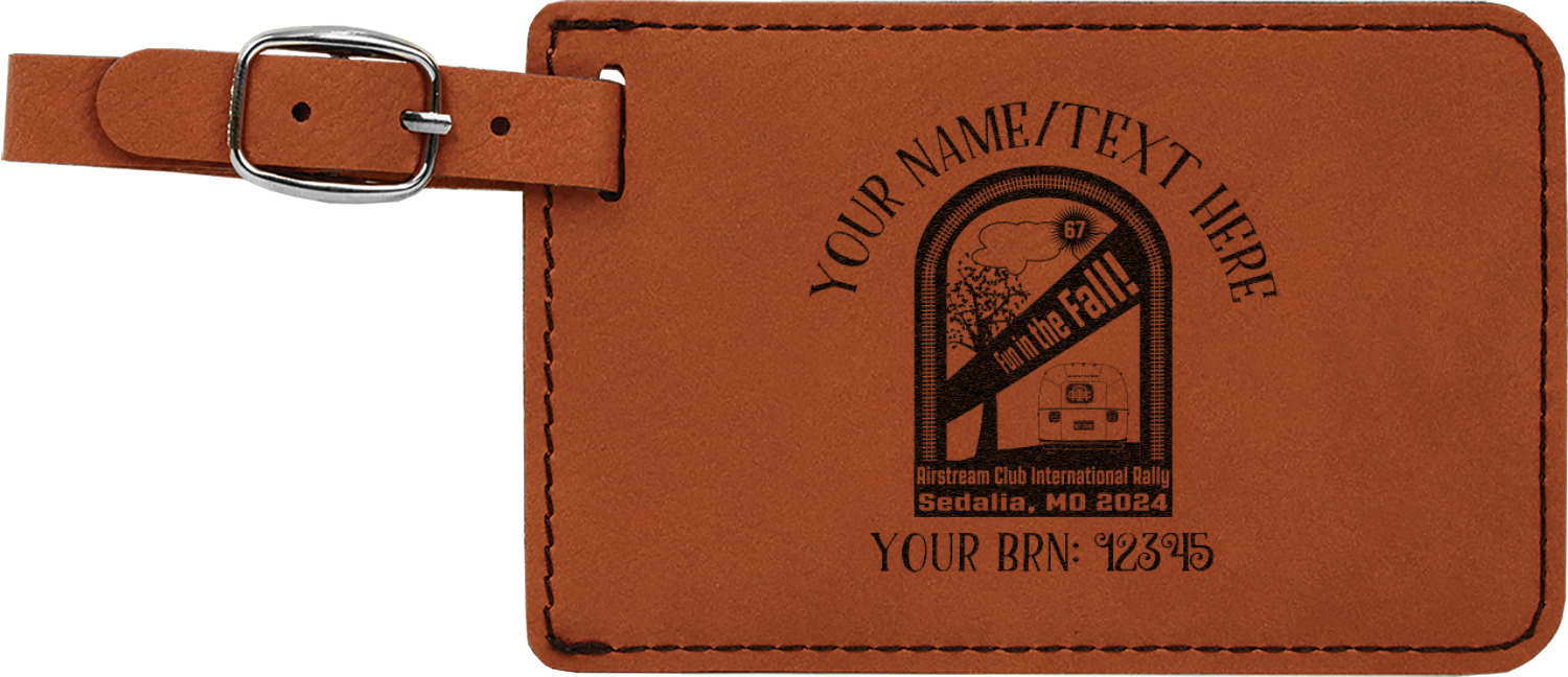This luggage tag will surely be able to get you started in having all the right tools for traveling. It is made of a beautiful leatherette material that is a nice shade of cognac brown. The front of the tag is where your design goes. The sturdy black stitching gives your design an extra pop and gives the tag extra durability. The back of the tag has a clear vinyl window where you can slip in your address card. The tag comes with a great little buckle strap that you can easily use to clip to your suitcase. The tag itself measures at approximately 5.5"W x 4.25"H.