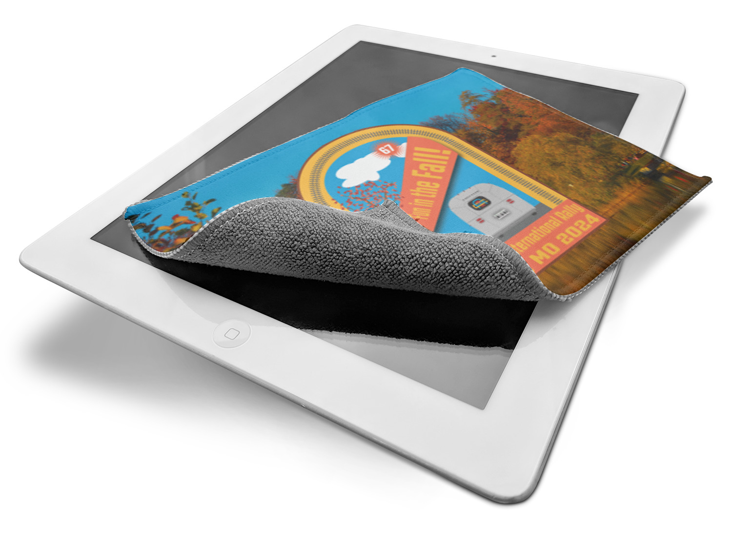 The back of this cleaning cloth is made from a gentle, grey microfiber material, that is masterful at removing smudges, grease, and fingerprints from lenses or electronic screens. The front side of the screen cleaner displays your personalized design in vibrant color. A beautiful stitch lines the edges and secures the microfiber to the polyester top. We provide you with the option of customizing this screen horizontally or vertically, depending on your preferences.