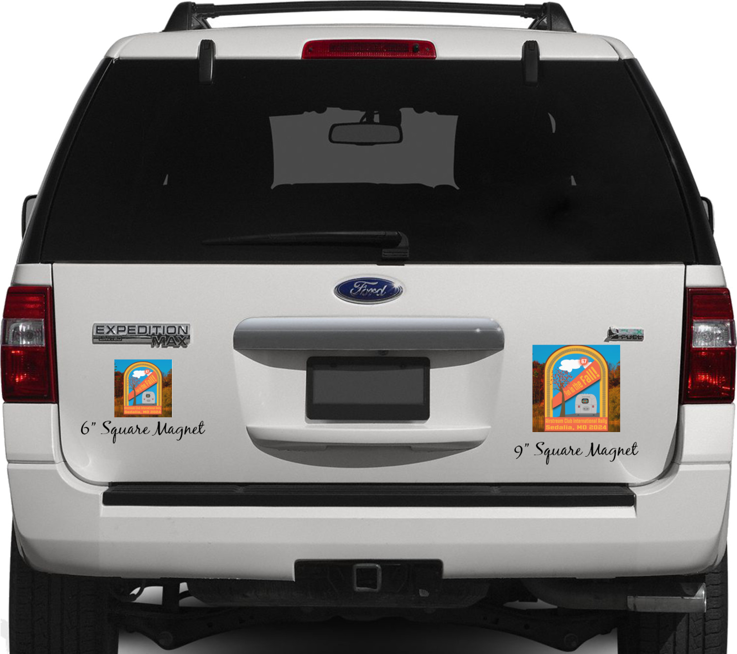 Your personalized car magnets are available for purchase in two shapes and two sizes. We carry round and square editions; each shape can either be 6 by 6 inches, or 10 by 10 inches, depending on your needs. Both versions are 1 millimeter thick, which is considered, within the industry, as the ideal thickness for automobile magnets. The magnetic car decals will adhere to any smooth, metal surface of your cars body, such as the trunk door or a side panel. However, please note that some vehicles are constructed from fiberglass bodies, which prevents the adhesion of anything magnetic. We advise that you test your vehicle before purchasing these magnets.
