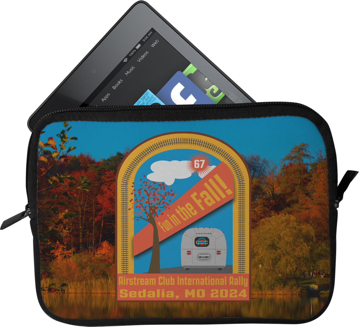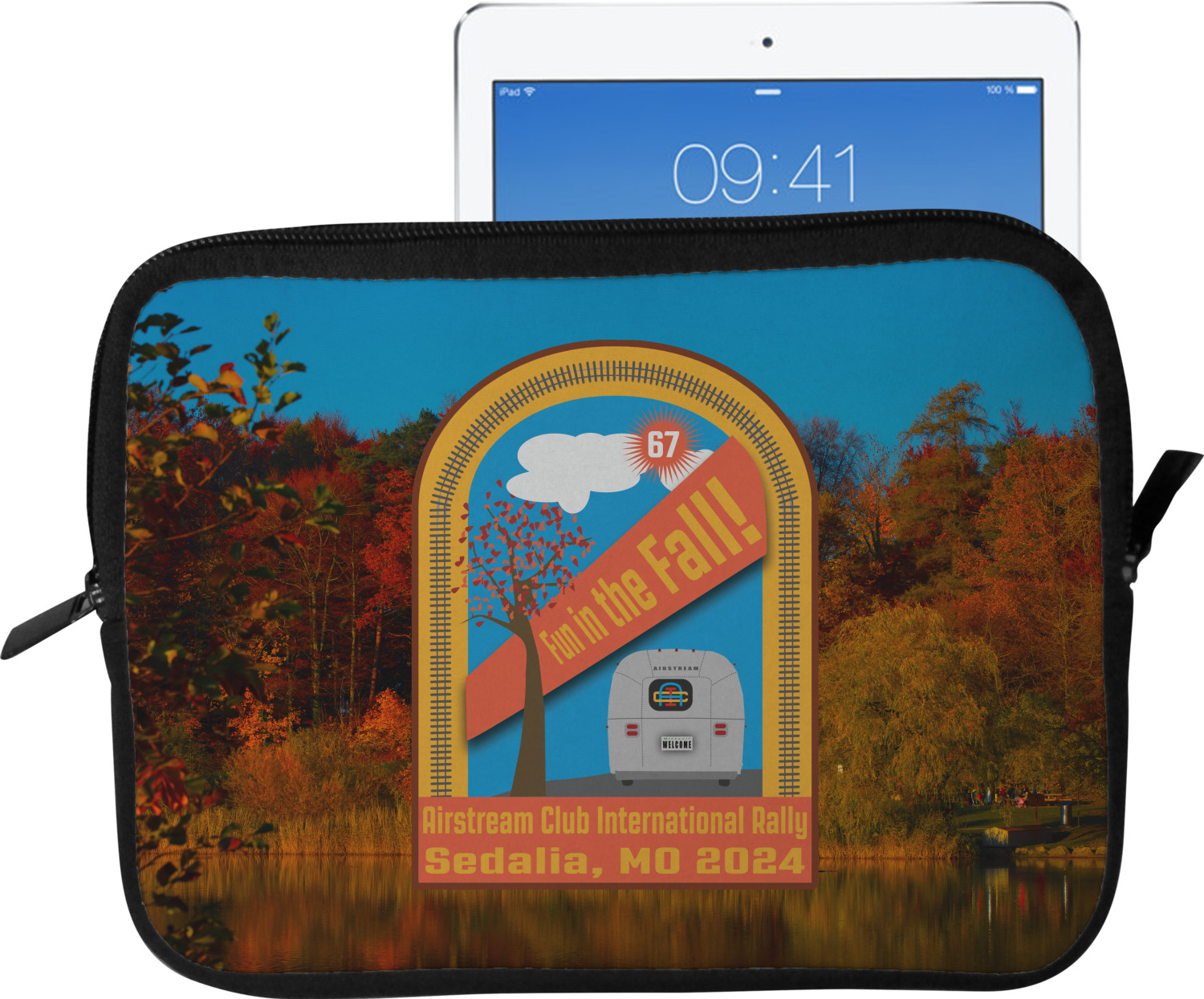 These tablet covers are fabricated from a water-resistant neoprene, and feature a zipper at its top for easy access to your device. The supple, cushioned nature of the neoprene will protect your tablet from the mishaps of daily life. Your personalized design is printed on the front of the I-Pad case, while the remaining sides are black in color. We provide this case in two sizes, in order to best accommodate your device. Our smaller size can fit a tablet with an 11 inch screen, while our larger sleeve is better suited for devices with approximately a 13 inch screen.