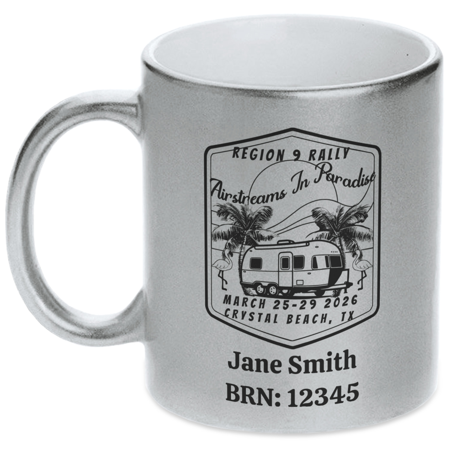 Our custom mugs are ceramic, which is great for keeping your tea or coffee warm! We offer two metallic mugs to personalize - Silver or Gold. Both styles hold around 11oz and have dimensions of approximately 3.75" x 3.5" x 4.75". Both the metallic mugs come in a matte finish and have glitter detailing to add a more pristine feel to the gold and silver base colors.
